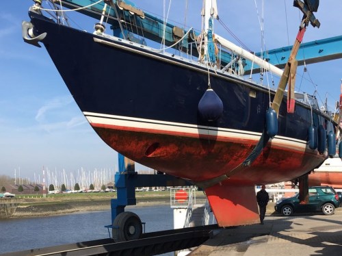 En als na de paasdagen de haven voller en de botenparking leger wordt, gaan wij uit het water. Er is meer plaats, de temperatuur is prettiger om buiten te werken, de dagen zijn langer.