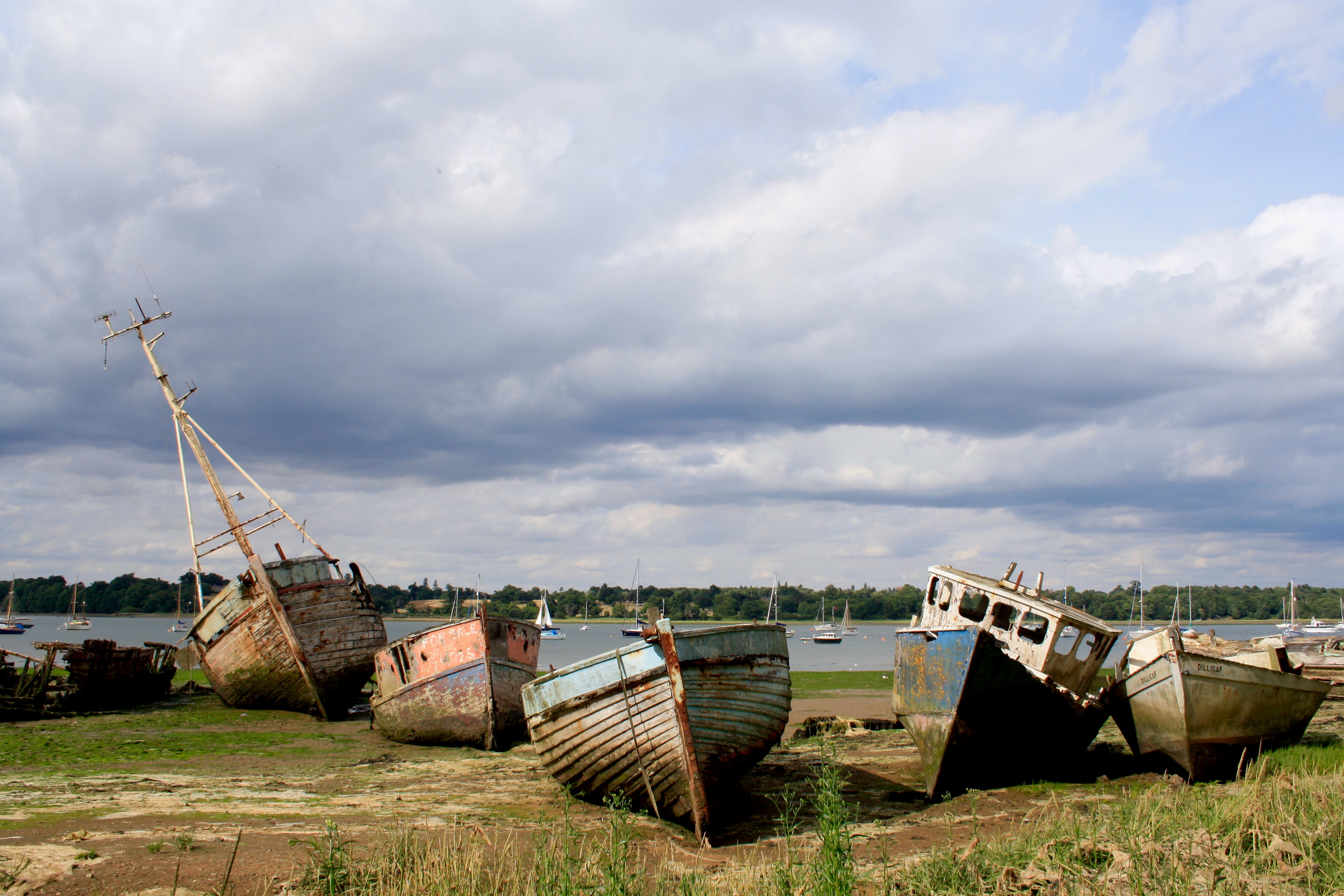 Zo’n pak watten, maar dan een heel erg groot, hangt nu boven ons en filtert de hete zon. Wanneer de bleke rafels te ver uiteen getrokken worden, brandt ze genadeloos. En bestrooit het wateroppervlak met miljoenen schitterende diamanten. Ik schat het dik 25°C. Dit is de Thames monding, half augustus. De wind laat het afweten. Volledig. Als het pak watten zich weer even sluit, koelen we af, dankbaar bijna.