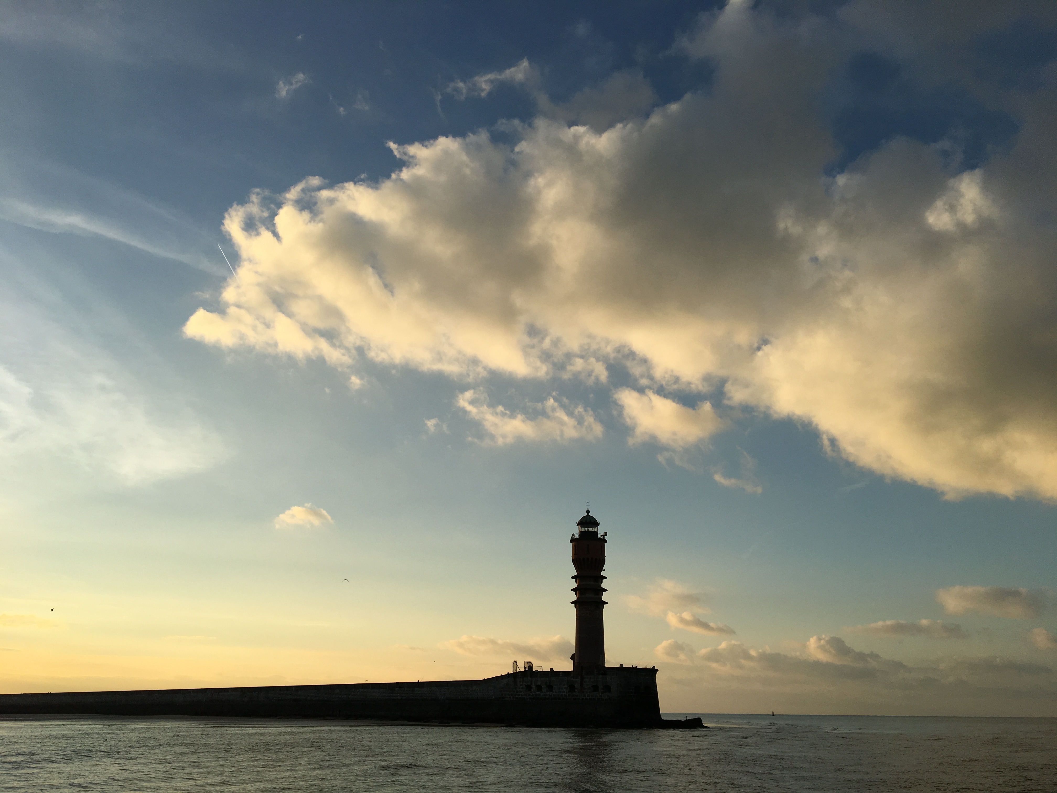 Op vrijdag rollen we traag voor de wind naar de haven van Duinkerke. Bij aankomst staat de zon al laag, dit zijn de korte dagen van het jaar. Het herfstige avondlicht maakt de niet zo mooie aanloop van Duinkerke een beetje mooier.
