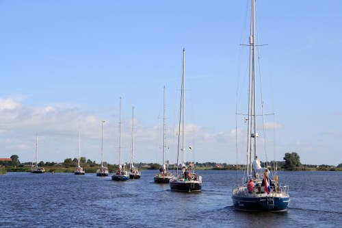 Op zaterdag laat de zon het afweten, guur herfstweer is het. Maar we kunnen recht naar huis, op één oor en met een stevige stroom mee. Warm gekleed zijn is de boodschap en dan gaat er niets boven laagjes. Een laagje ondergoed, een laagje thermisch ondergoed, nog een tussenlaagje met een kasjmier truitje (járen oud, maar niets geeft zo’n gezellige warmte), een steviger fleece en dan een zeilpak. Kousen, laarzen, muts. En hee, we treffen het, regenen doet het pas als we al terug goed en wel afgemeerd liggen in Nieuwpoort.