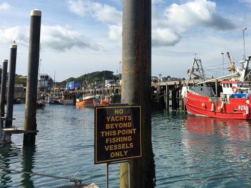 En dan het weerbericht. Voor het eerst deze vakantie is er oostenwind voorspeld. Voor morgen. Alleen voor morgen. Het wordt dus kiezen. Blijven we hier en nemen we tijd om Newlyn, Penzance, St-Michael’s Mount te gaan bezoeken of glippen we dat weervenster door naar de Scilly eilanden? Het nu-of-niet-gevoel haalt het, we besluiten om morgenvroeg de oversteek te maken, wind in de poep.