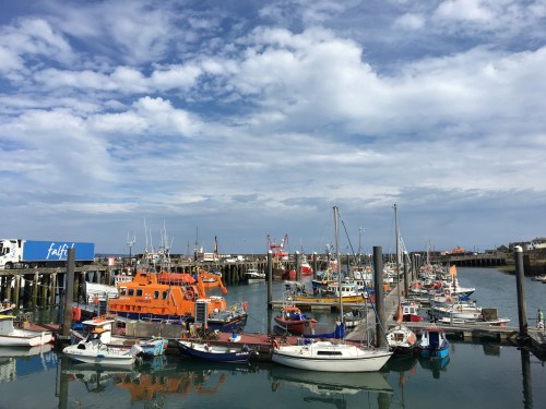 Hier in Newlyn laat de ondergaande zon een vlammende hemel achter. Newlyn. Half zeilend half tuffend zijn we vandaag de 35 mijl van Falmouth rond Lizard Point naar hier gevaren. In alles wat we aan boekjes en gidsen aan boord hebben lees ik dat zeilers in deze haven niet erg welkom zijn. Hier zwaaien vissers de plak. Maar behalve een nogal norse havenmeester valt het best mee.