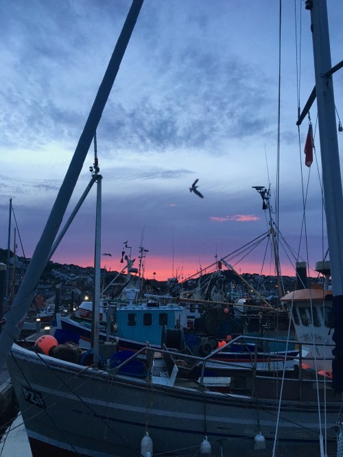 De avondlucht is zoet, het zachte strijklicht van een ondefinieerbaar blauw. In de 19de eeuw was dit een kunstenaarsnest, bekend geworden als The Newlyn School. Schilders kwamen dit fijne inspirerende licht opzoeken. Als ik uitkijk over de baai begrijp ik waarom.