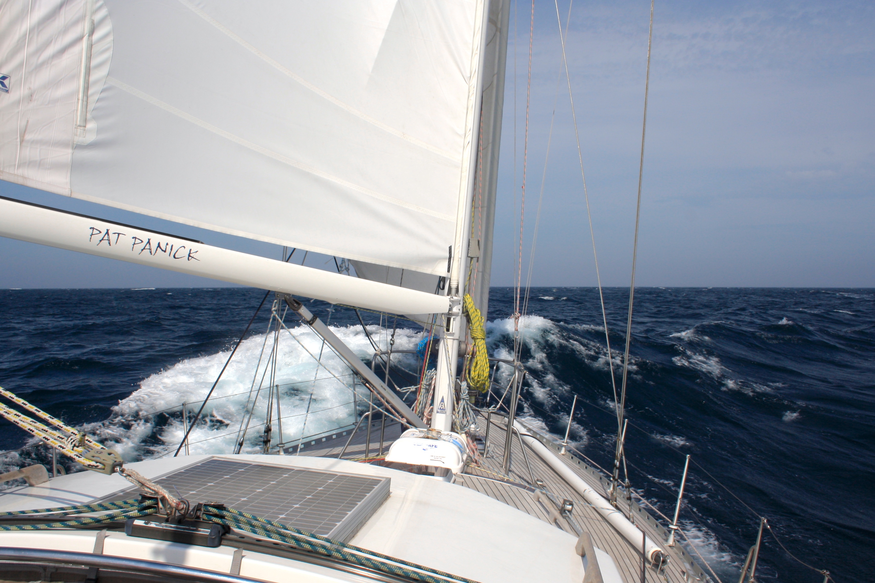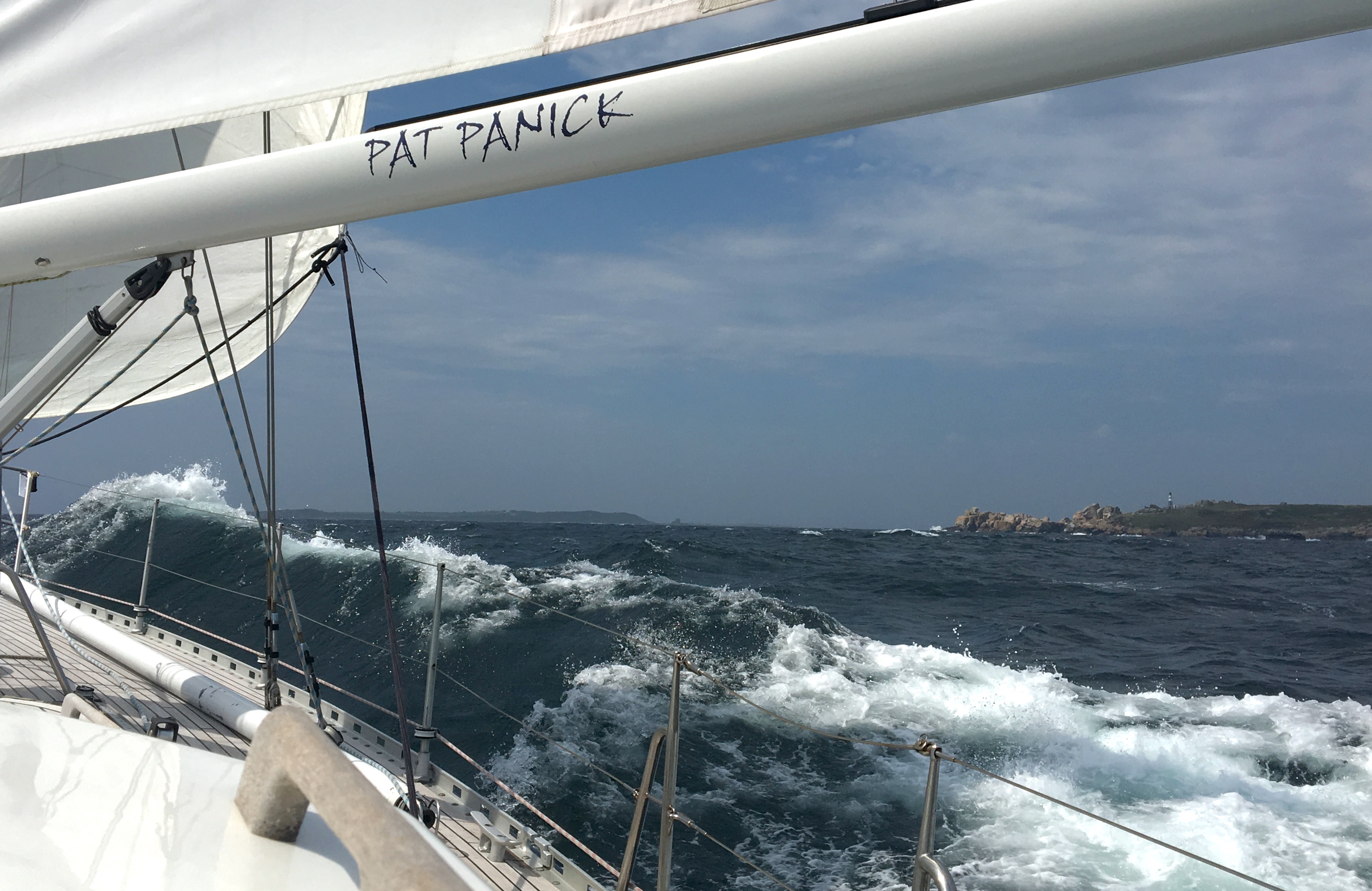 Afkruisend voor de wind stuiven we over een donkerblauw deinende zee naar the Isles of Scilly.