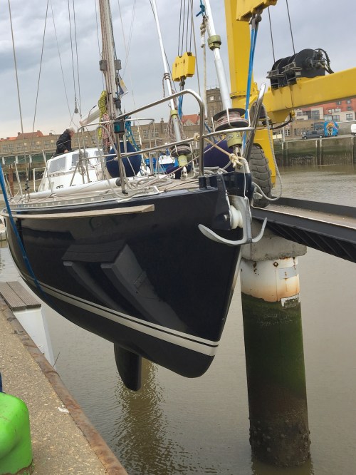 Daar zit ik, op mijn kantoorstoel. Ik kan niets doen, het voelt niet goed. Aan de andere kant van de lijn hoor ik op de achtergrond de stemmen van de zeilvrienden. Het stelt me gerust. Er wordt beslist dat de boot vandaag nog terug uit het water gaat. En morgen, vrijdag, wordt er naar die schroefas gekeken. En als het euvel kan verholpen worden, kunnen we met een beetje geluk maandag terug het water in. Laat de winter nog maar even zijn gang gaan dit weekend…