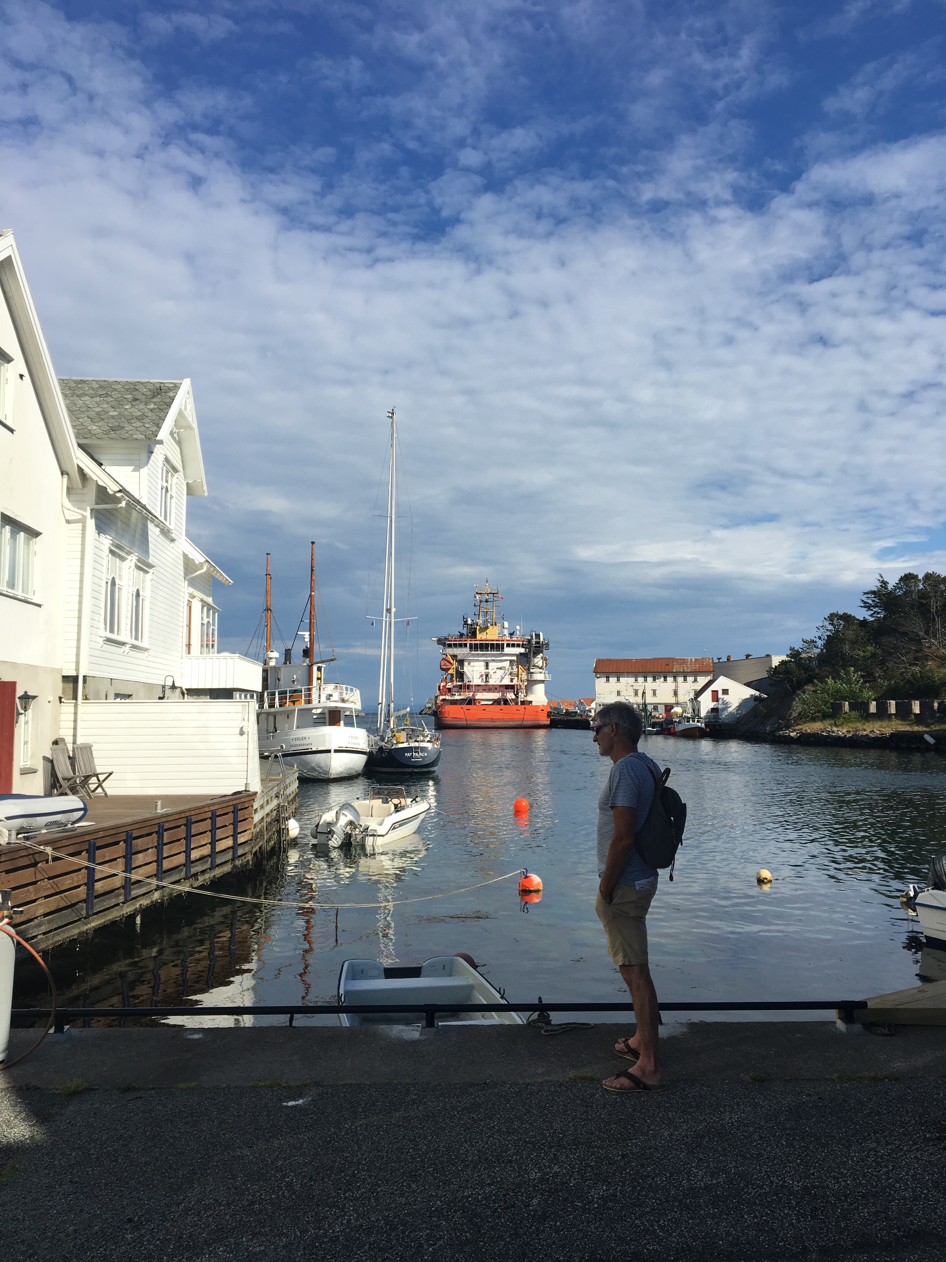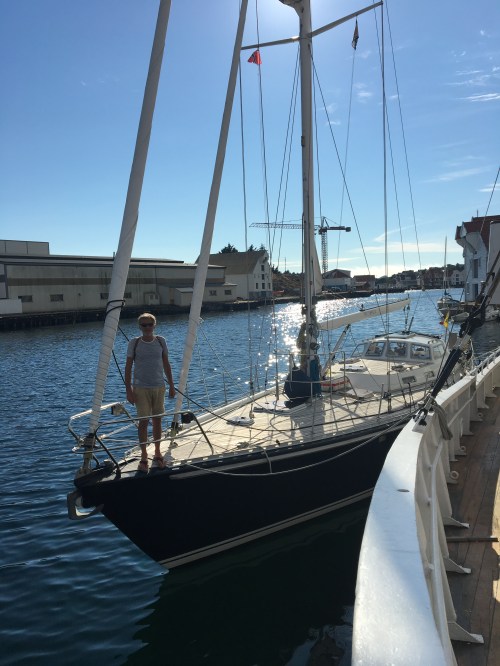 We maken kennis met Cecilia en Arve, een hartelijk koppel uit Tananger. Oprecht openhartig bekennen ze zopas onze vlag gegoogeld te hebben, want waren even in twijfel of het nu een Duitse vlag was of niet. Ze hebben bewondering voor het feit dat wij hier aan de westkust komen zeilen, volgens hen wil iedereen naar het meer mondaine zuidoosten van Noorwegen. Maar zij zijn fier op hun iets minder toeristische vaargebied. Met de kaarten er bij duiden ze nog een paar mooie plekjes aan en geven ons het advies om naar Jørpeland te varen in plaats van naar Tau als we naar de Preikestolen willen. Waar ze, voegen ze er fijntjes aan toe, zelf nog nooit geweest zijn wegens te toeristisch… Hún favoriete zeilgebied is de Hardangerfjord. Dat is die van op ons ooit-nog-to-do-lijstje.