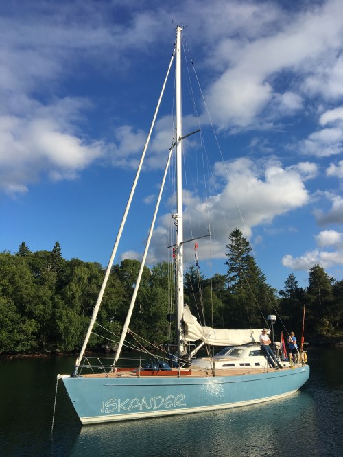 Drie jachthavens heb je hier. Vågen, in het centrum van de stad, is niet toegankelijk wegens het festival, Børevika, het haventje bij het Ojlmuseum ligt afgeladen vol, en dus varen we door naar de iets verder gelegen marina op het eilandje Grasholmen. We zijn loom door de warmte en pas als de zon begint te zakken wandelen we in de zwoele avondlucht naar de stad. Het is vrijdag, het weekend begint en het is de avond voor mijn verjaardag…