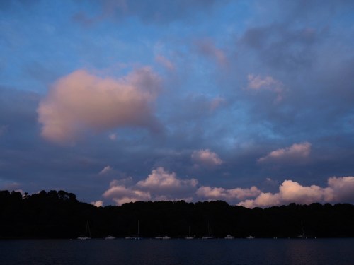 Terug naar Jersey dus. Ik verwacht weinig. Mijns inziens altijd de beste strategie. Bij het vertrek uit Lézardrieux kondigt zich met een glanzende zonsopgang een welgekomen zomerprik aan.