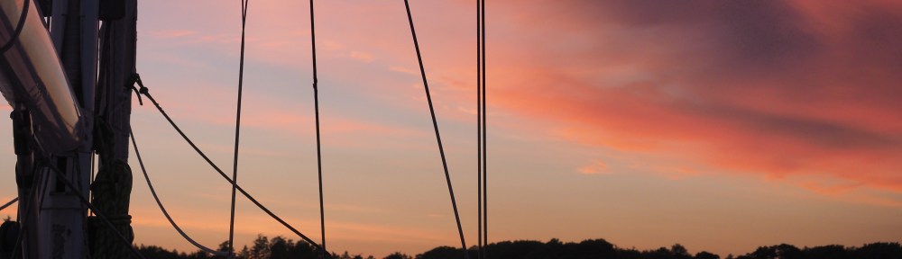 De avond valt. Een boot vaart traag voorbij. Langzaam zakt de zon. En wij liggen roerloos achter ons anker…