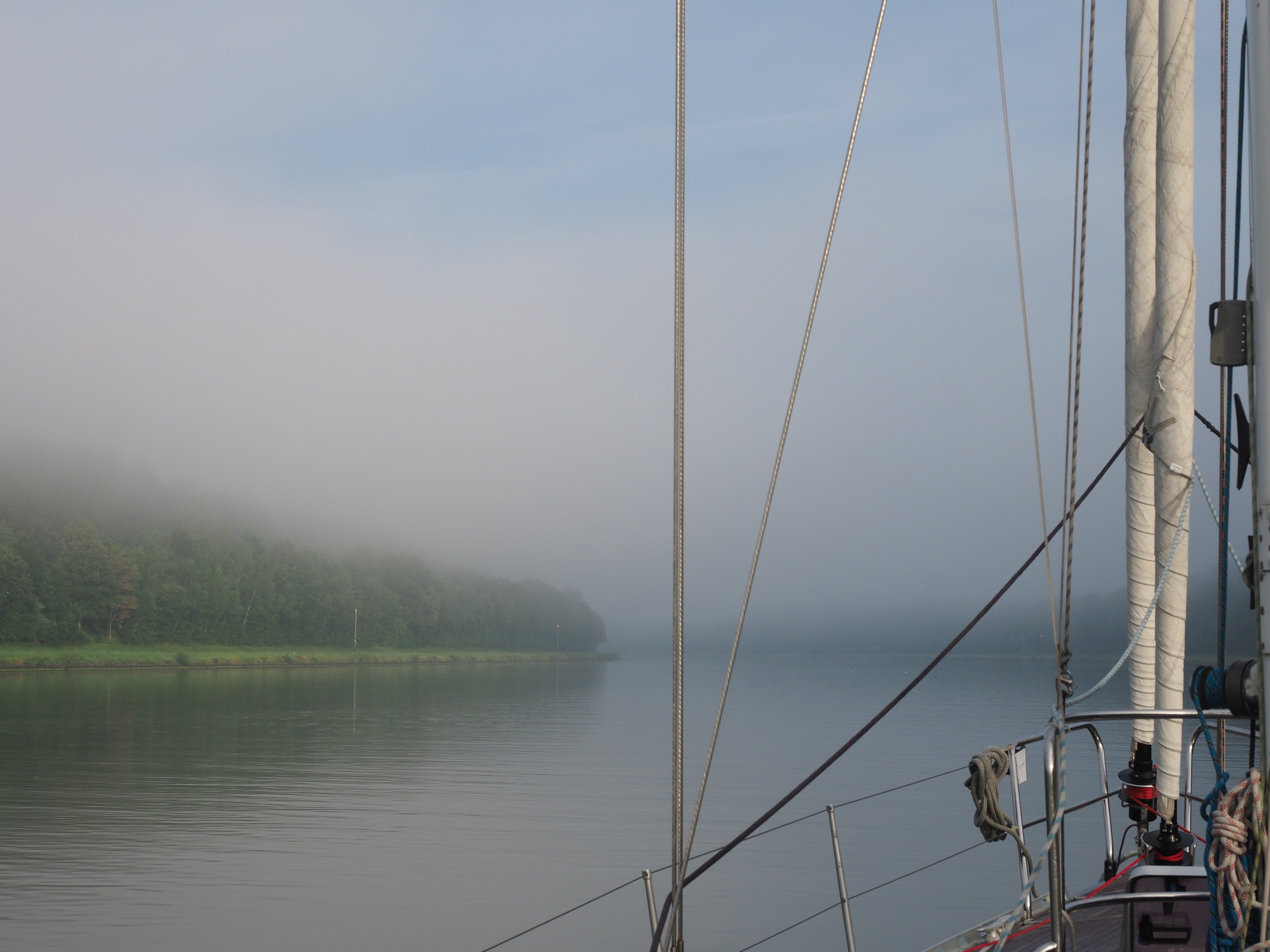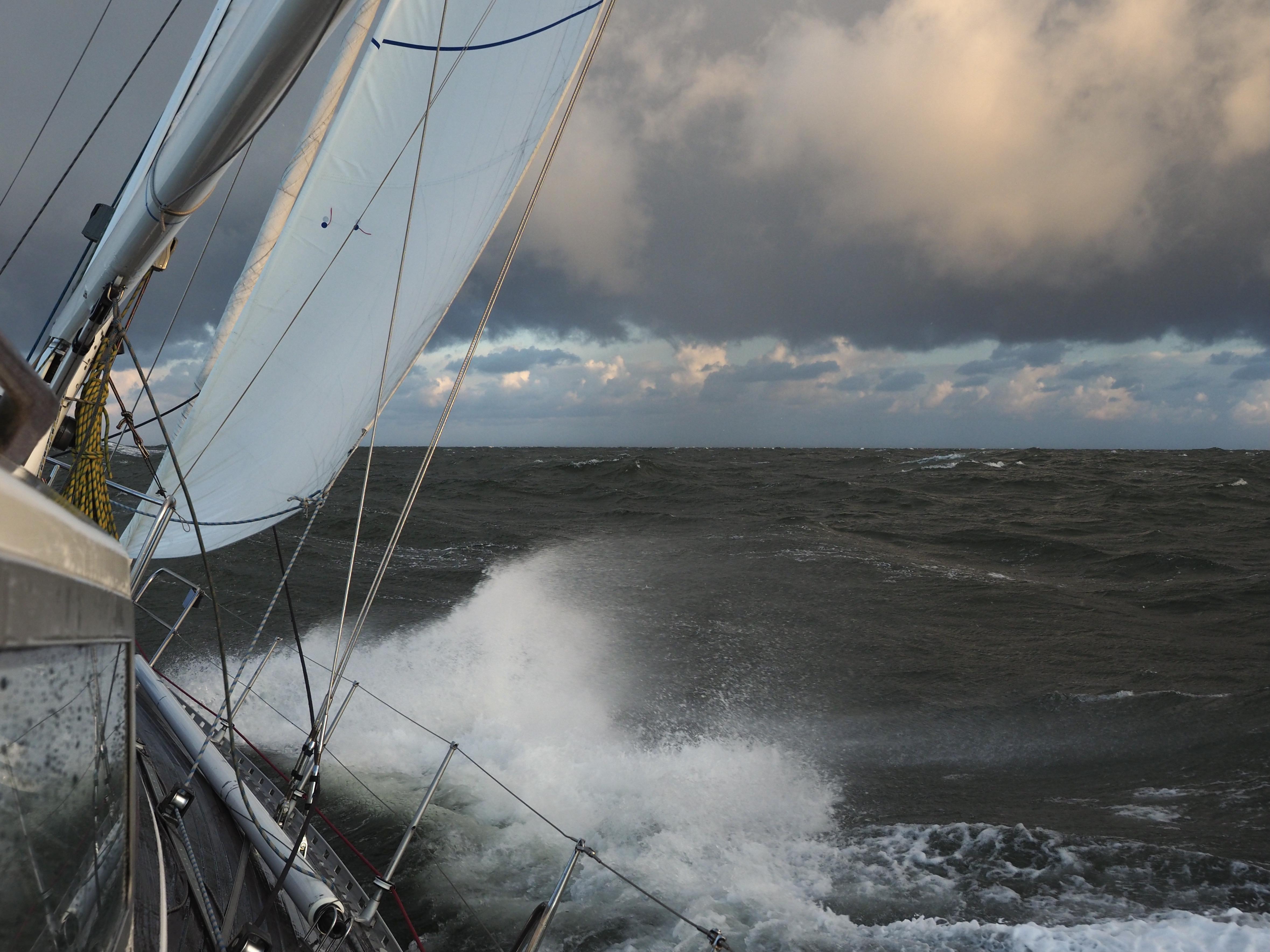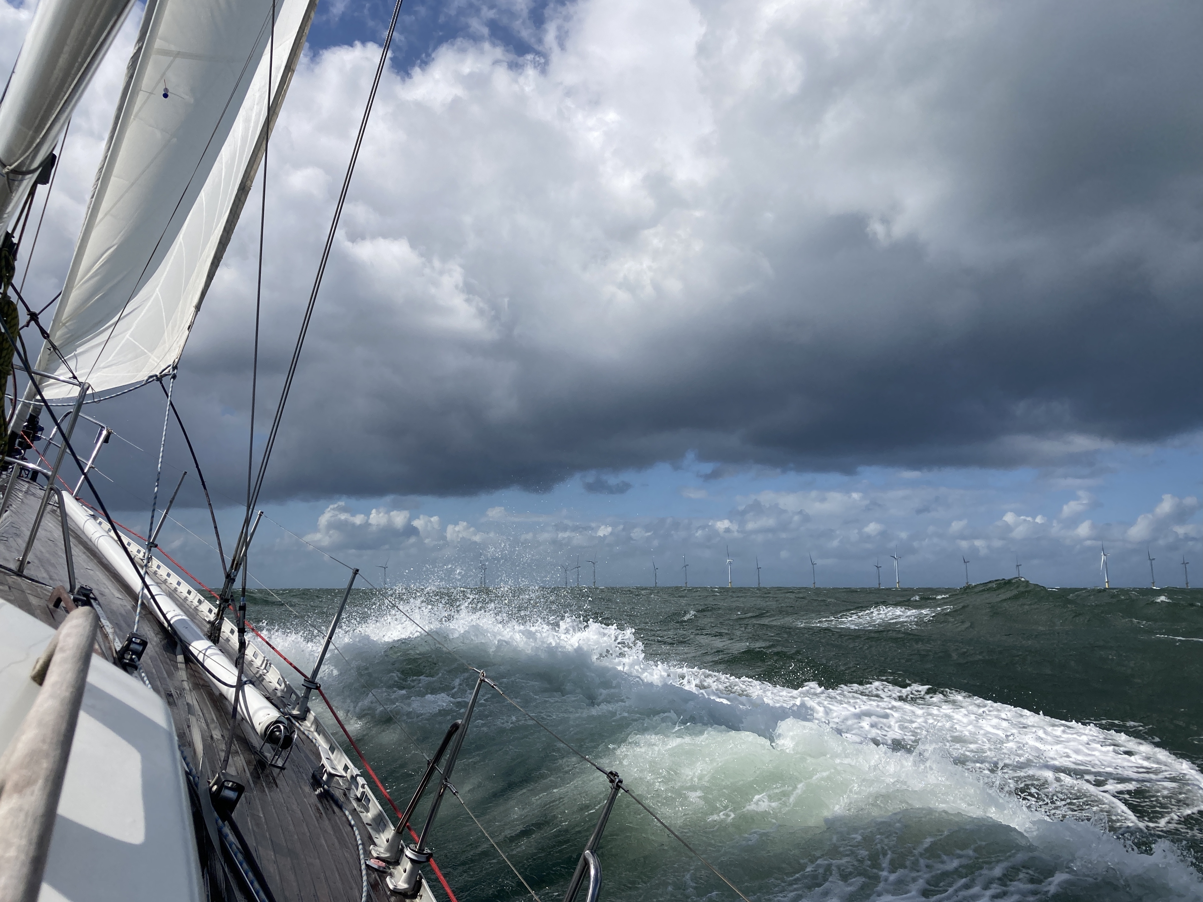 De Elbe stroomt hard. We spoelen naar zee, waar de realiteit de weerberichten helaas bevestigt. De wind zit tegen. En stroom méé, dat is maar voor enkele uren. En dan gaat die hele Noordzee de andere richting uit, en wij er tegenin. Ja, ja, we wisten het wel, maar als je er middenin zit, is het zo echt als wat. En dan zijn het geen cijfertjes, pijltjes of kleurtjes meer op een weerkaart op een schermpje. Een schermpje dat je lichtjes schuin voor de zeekaart houdt, in de hoop dat het héél misschien nét nét bezeild zal zijn… Niet dus. Als het tegen zit, zit het tegen. En waait je muts je bijna van de kop…