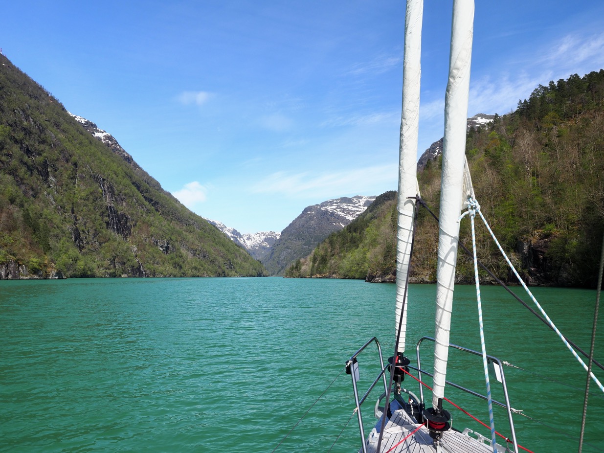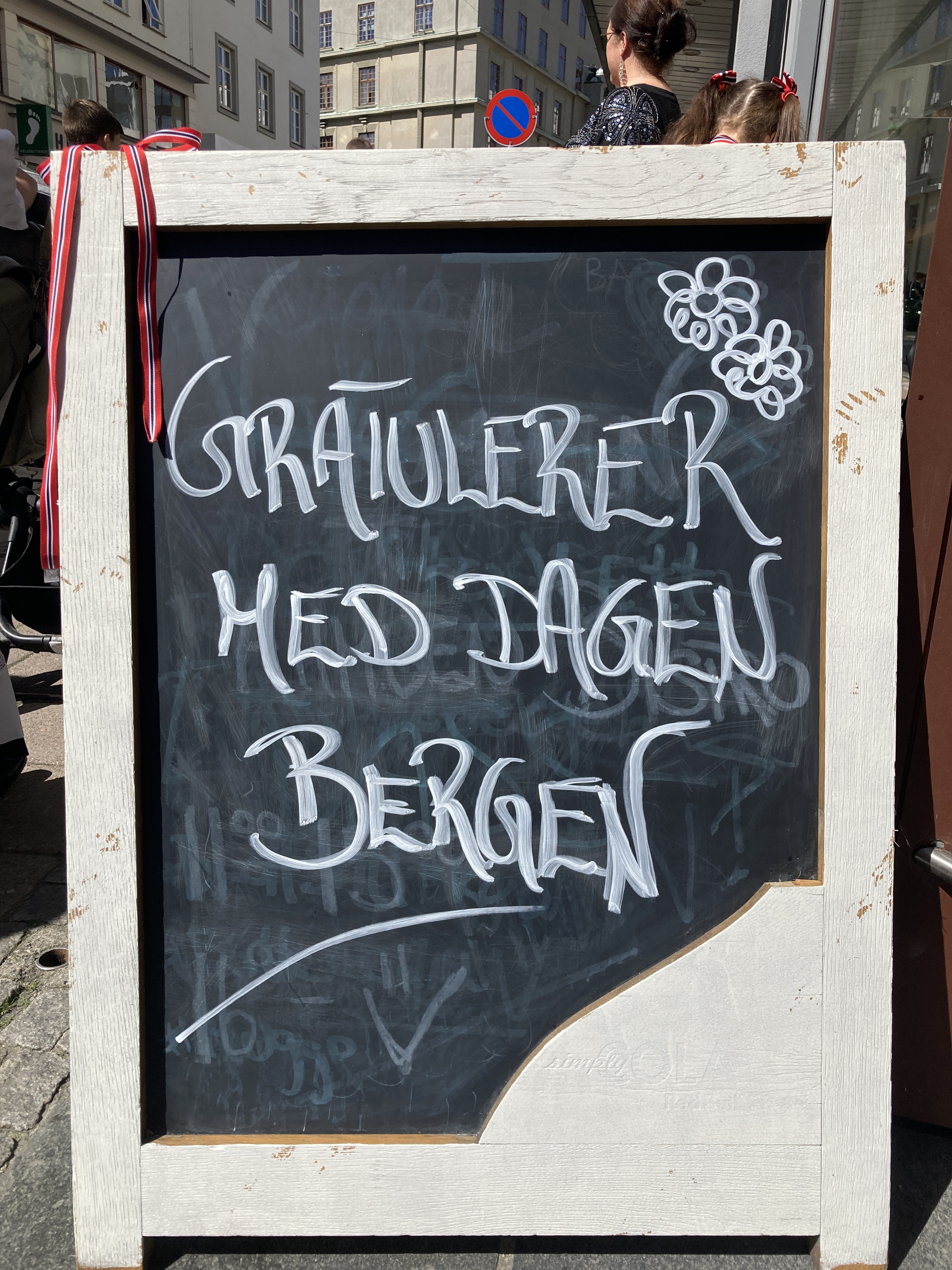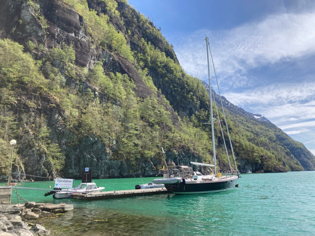 Vanuit huizen en vanop balkons klinkt gezang en handgeklap, jongeren vieren feestjes en het gaat er luidruchtig aan toe. Gratulerer med dagen! klinkt het overal. Gefeliciteerd! Noren beginnen deze dag traditioneel met een royaal ontbijt. Eitjes en zalm, aardbeien en champagne. Verder eten ze de hele dag ijs, veel ijs. En ze blijven drinken… Ik denk aan de wijnkaart van Fjellskål, het visrestaurant waarvoor we afgemeerd liggen. Gisteren dachten we nog dat 199 kr (19,90 €) voor een Sancerre toch niet gek was, tot we zagen dat de prijzen op de kaart per glas waren… Nu zit het restaurant tjokvol en op elke tafel staan flessen wijn en champagne. Hier wordt omzet gedraaid.
