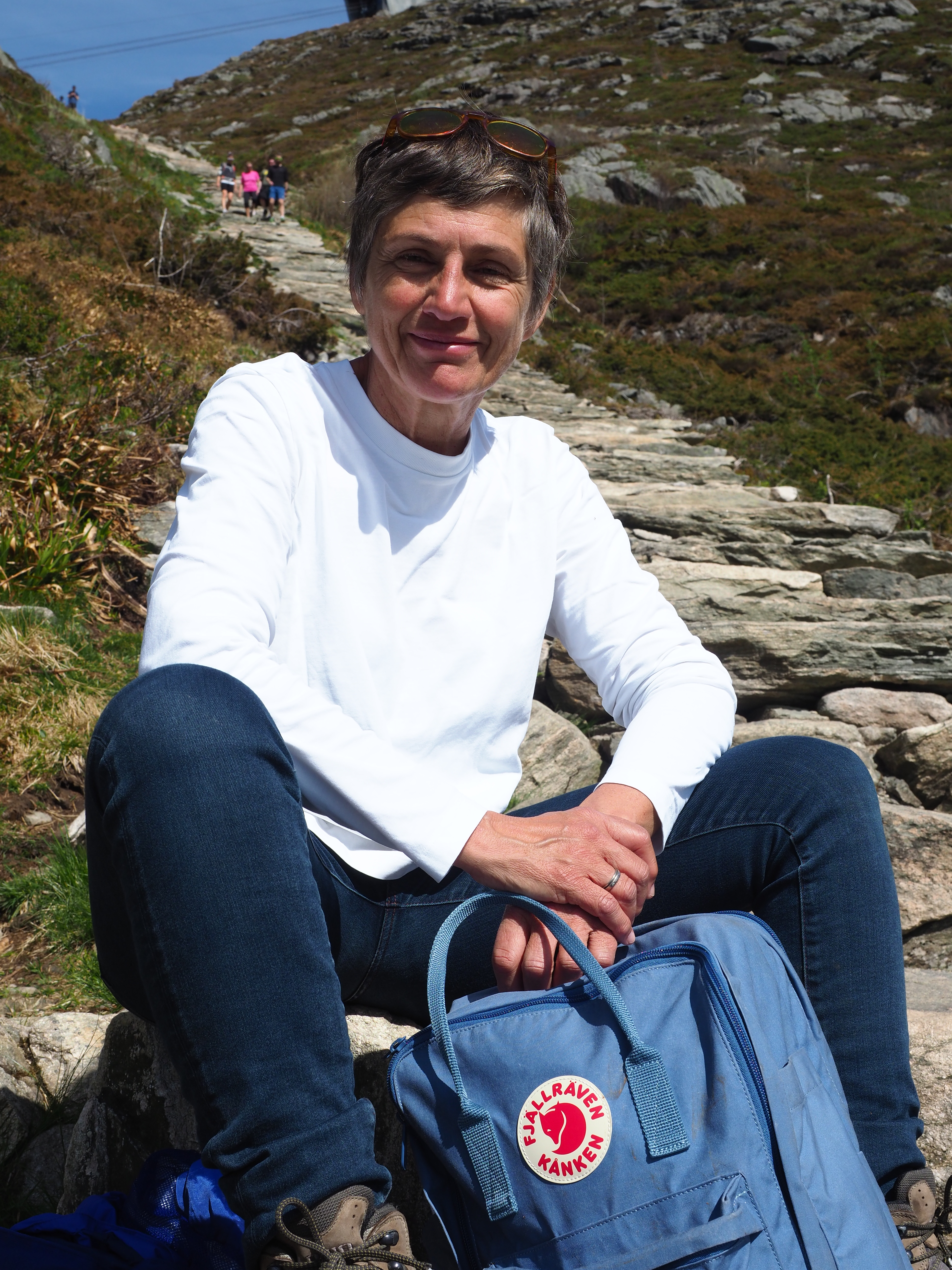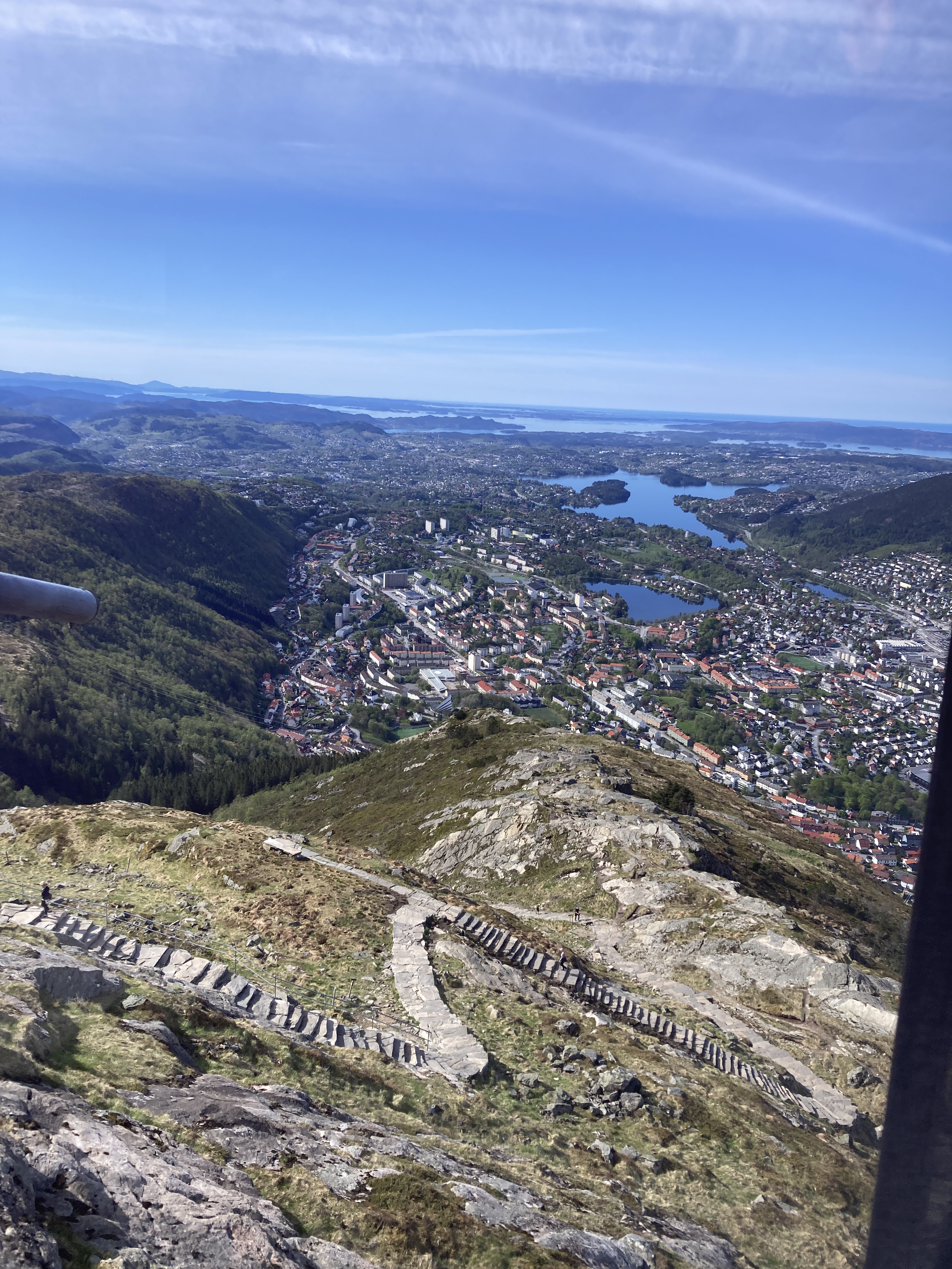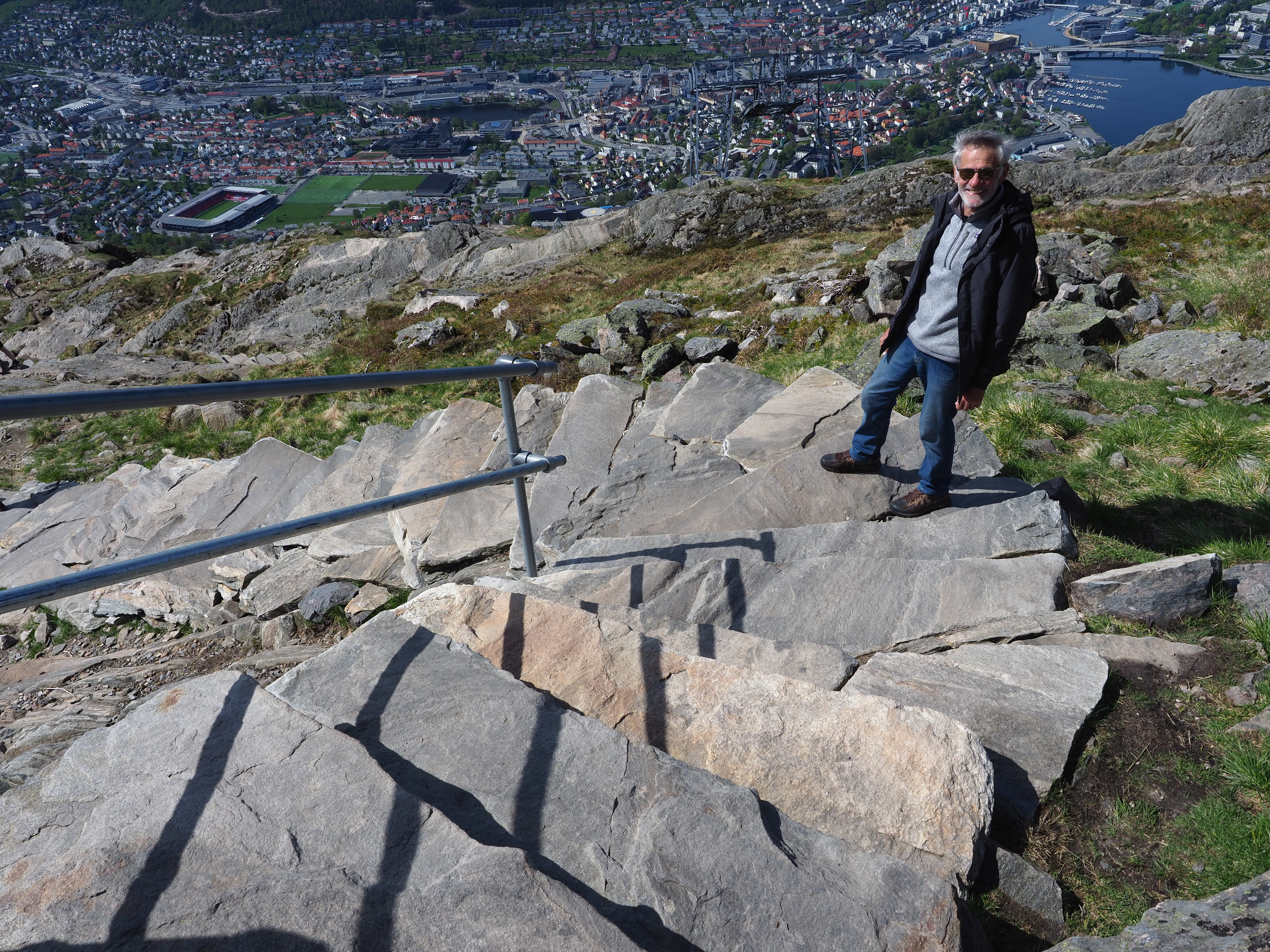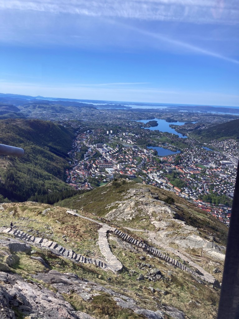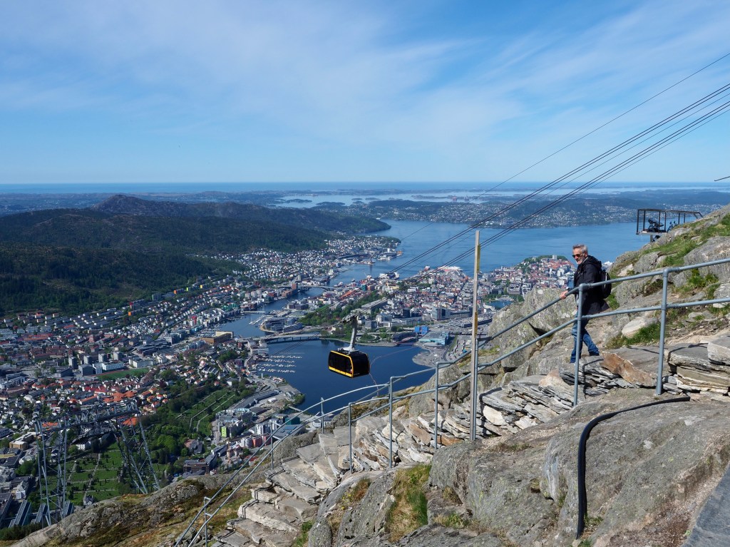 En terwijl we het over bergen hebben, de dag voor de Syttende Mai trekken we nog naar Ulriken, met zijn 643 meter de hoogste van de zeven bergen rond… Bergen. We gaan omhoog met de kabelbaan, maken een mooie wandeling naar de top en keren te voet, 1300 treden naar beneden, terug. Het beetje spierpijn dat ik daaraan overhoud valt beslist in het niet bij de koppijntjes van heel wat Bergenaars op 18 mei…