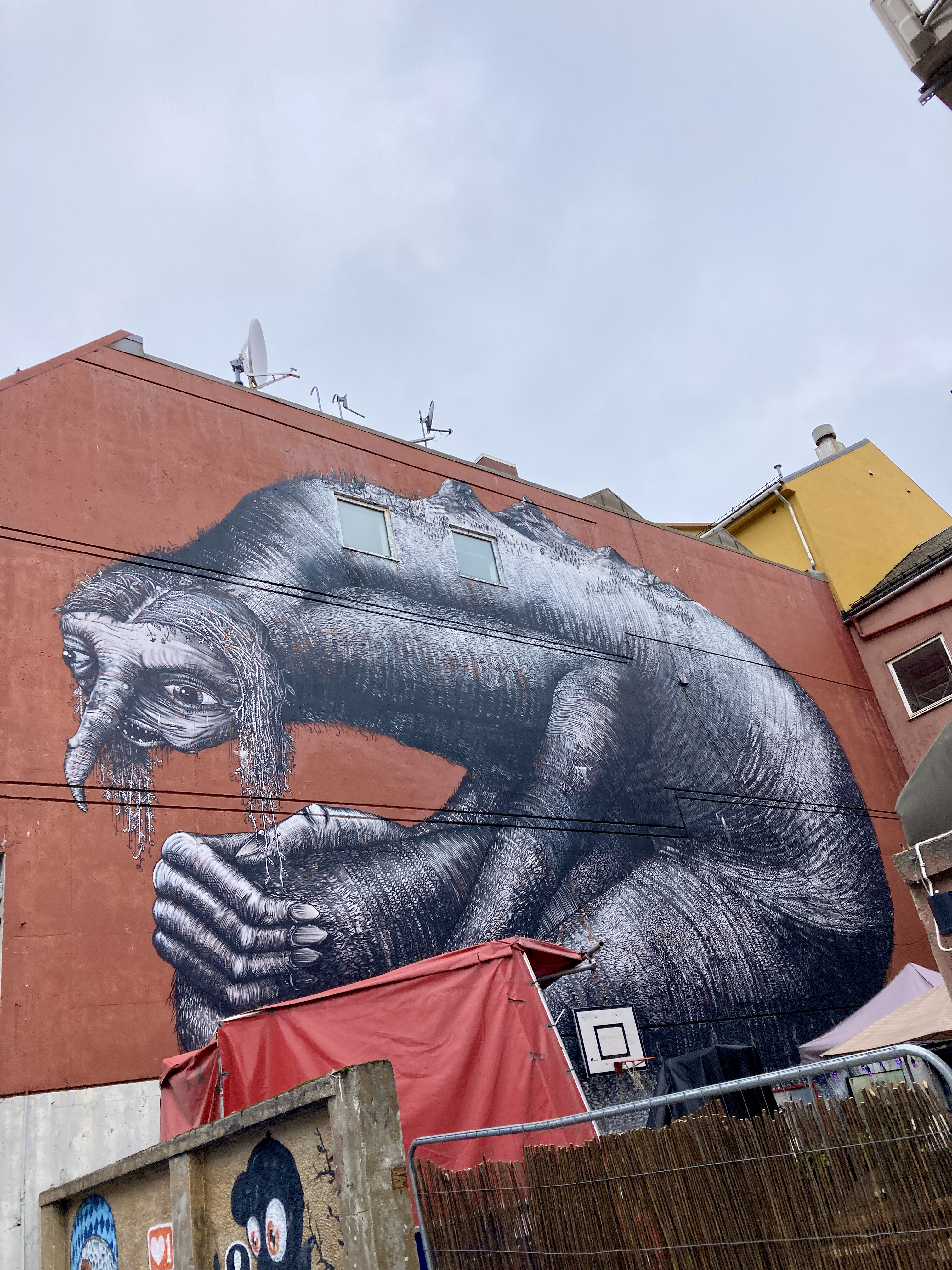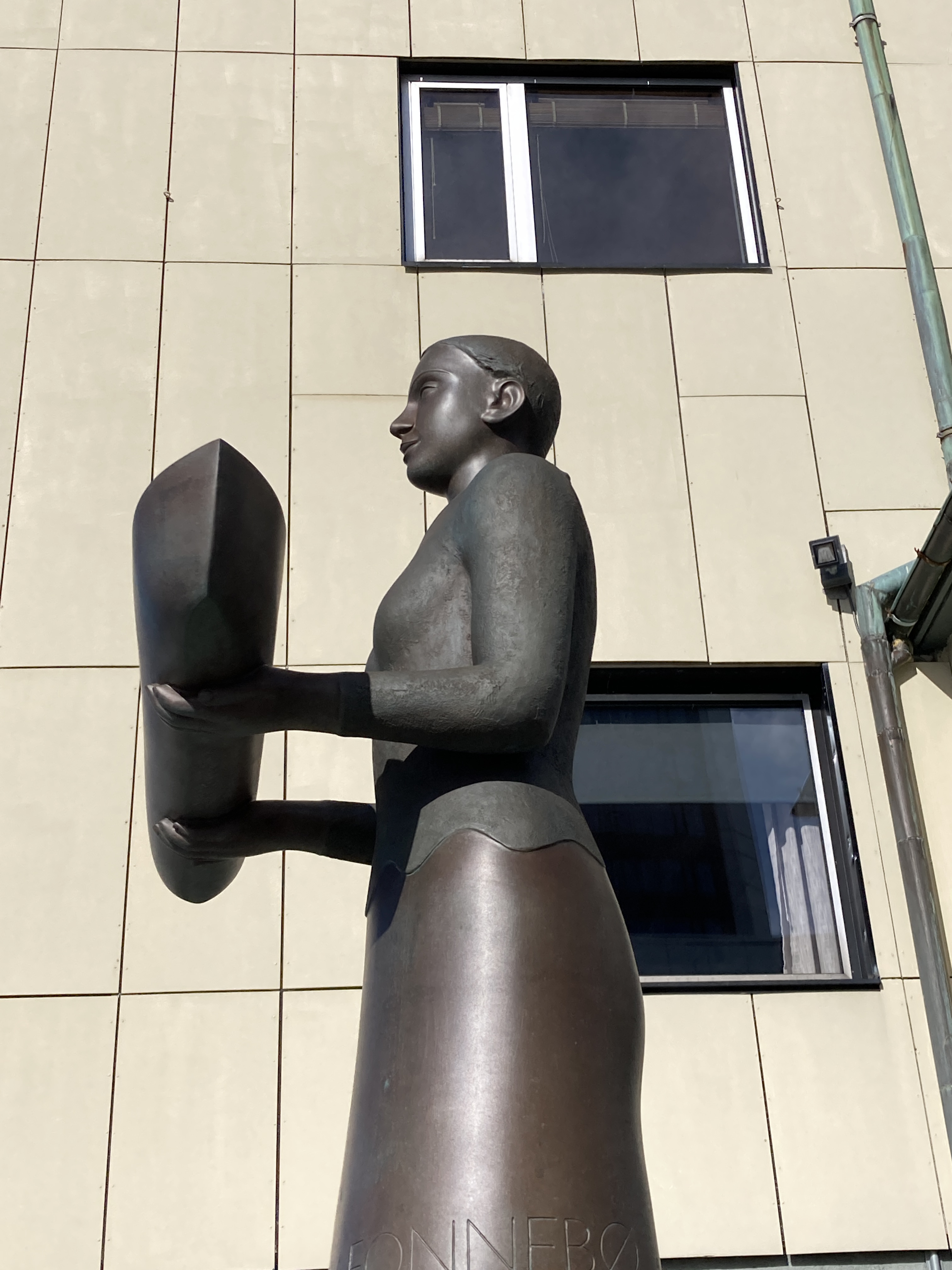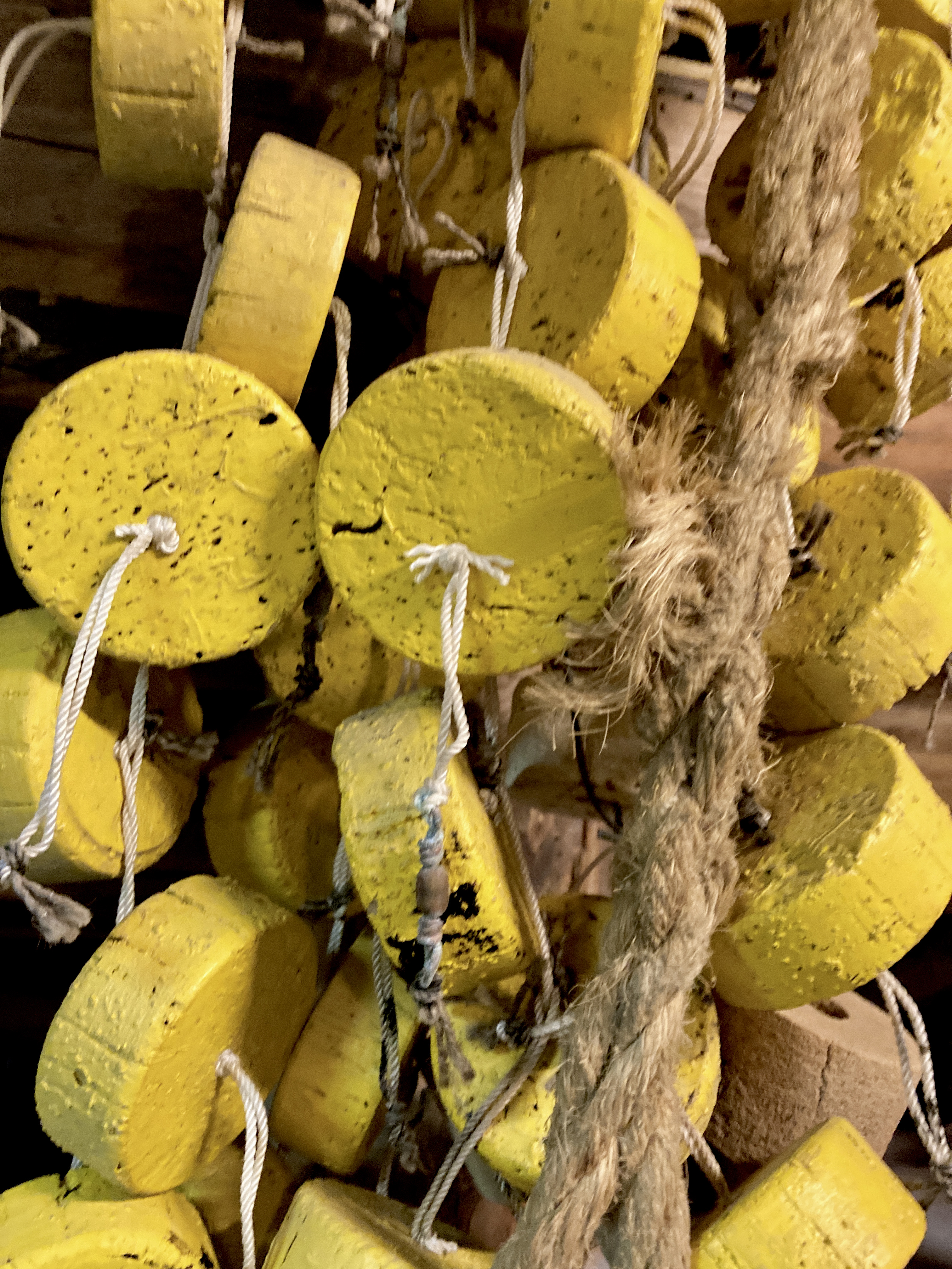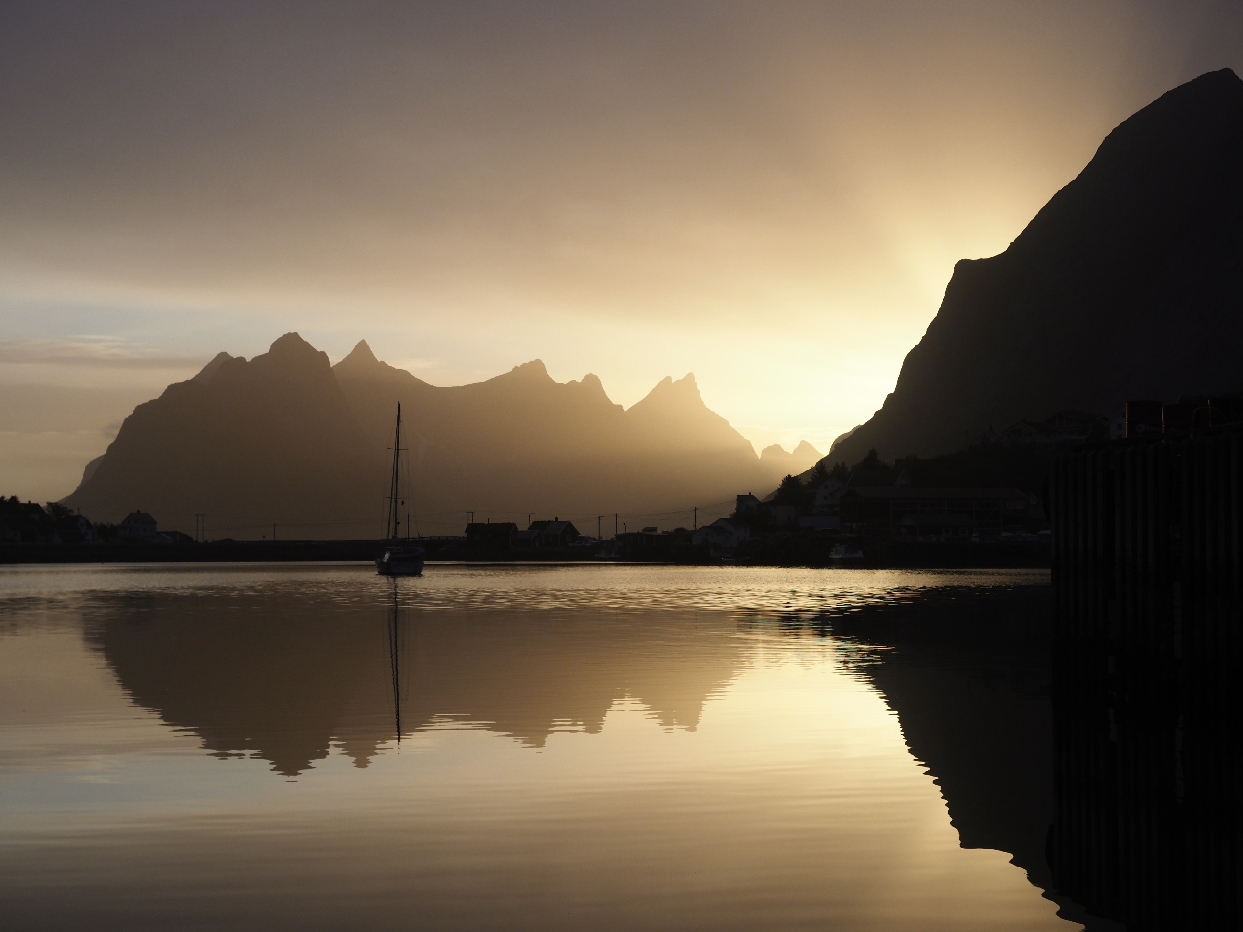 Het is veel te warm en het pashokje van Felstad, Fiskeutsyr is krap. Fiskeutsyr, vrij vertaald, ‘gerief voor vissers’. We zijn in Svolvær, de grootste stad van de Lofoten. Nee, we zijn hier niet met onze boot gekomen maar met de ferry. Ik zweet me te pletter in de zwart met fluogele overall. Nadat we allebei een gevecht geleverd hebben, besluiten we om ze te kopen. Elk een pak van Fladen, de iconische water- en winddichte overall met drijfvermogen zoals alle vissers hier dragen. Ze zijn te omvangrijk voor gewone plastic winkeltassen en de man vraagt bezorgd of we het niet vervelend vinden om ze zo, zonder verpakking mee te nemen. Daar lopen we door de stad, elk met een omvangrijk pak als een bewusteloze drenkeling over de arm.