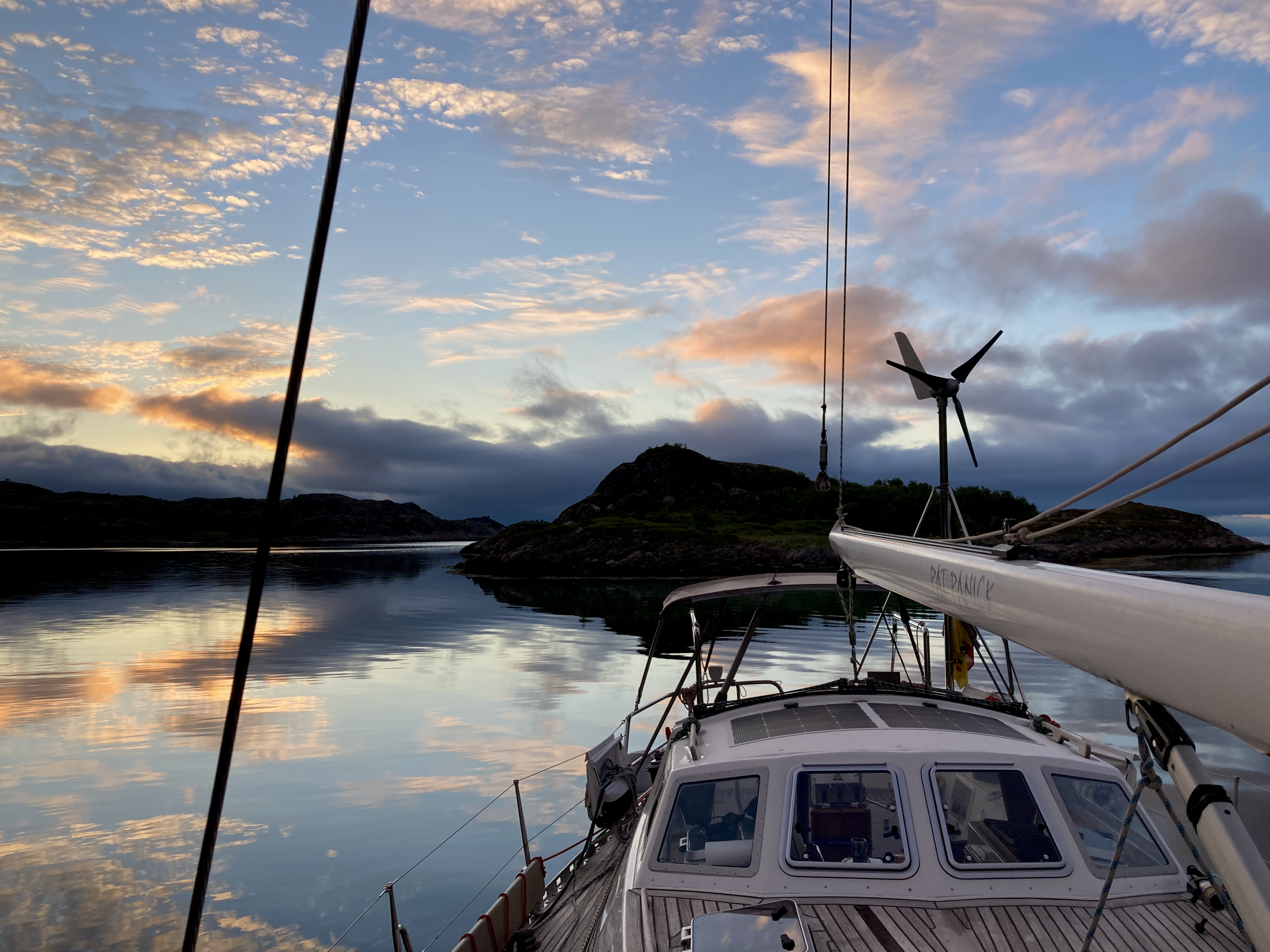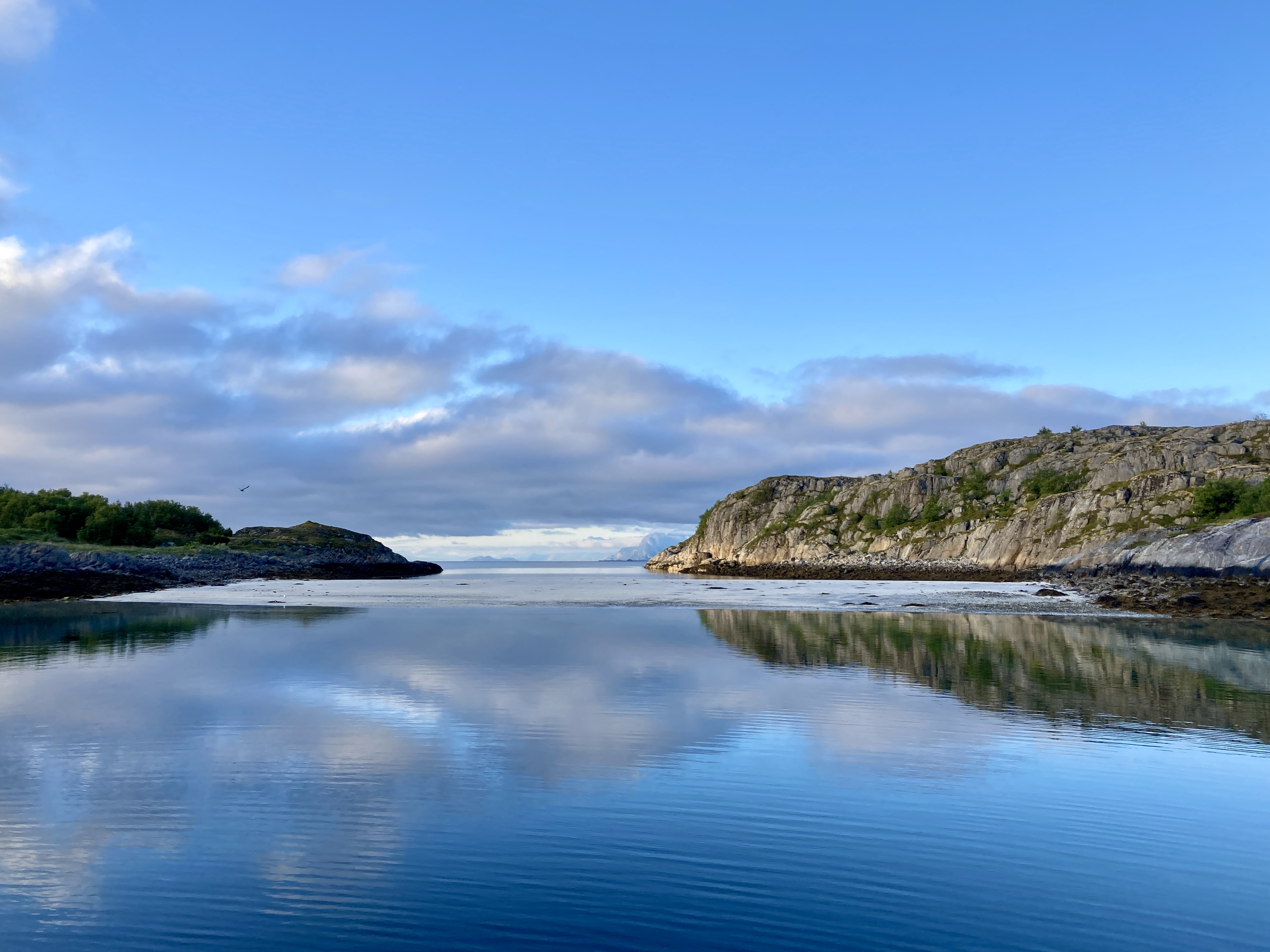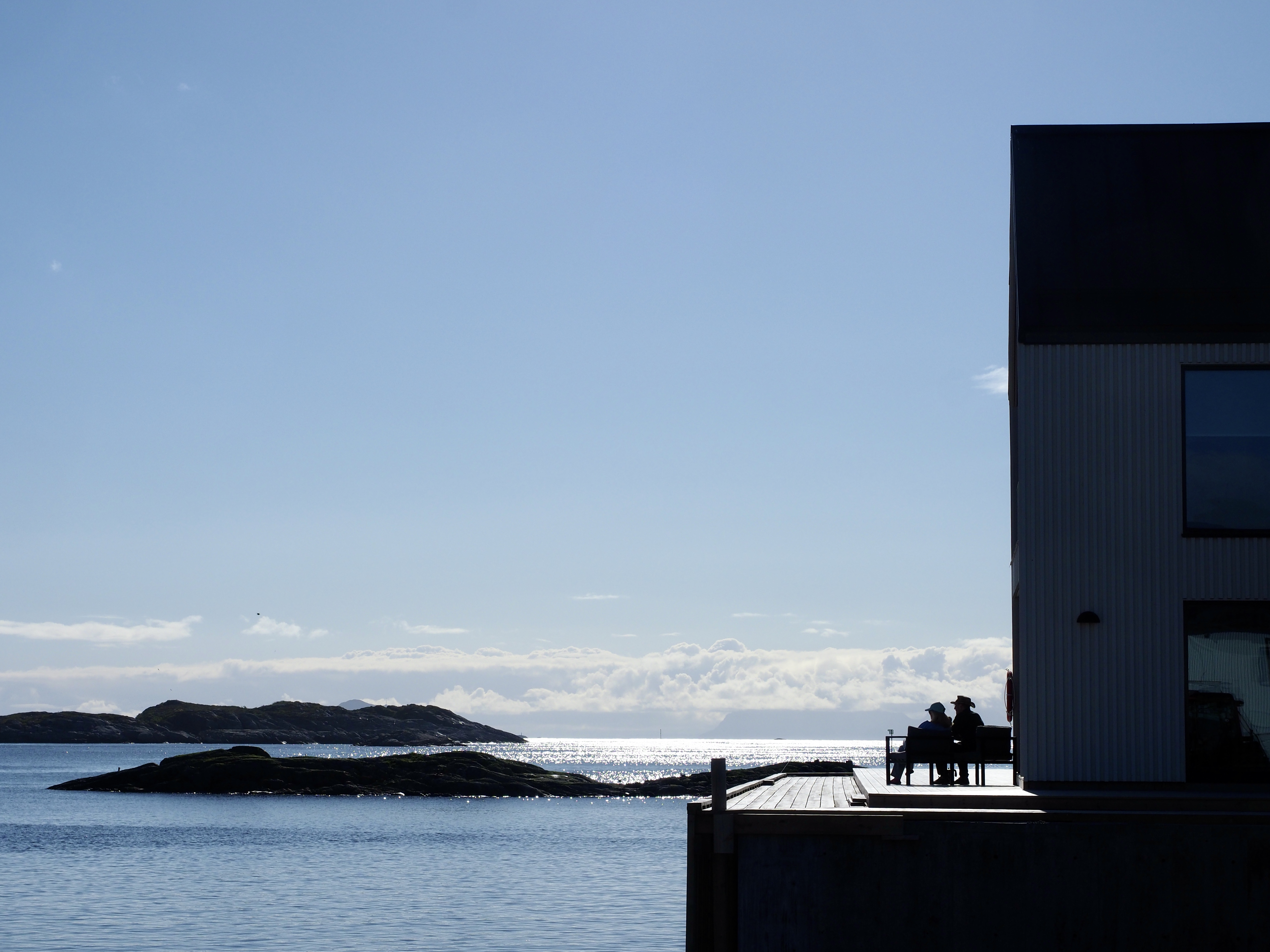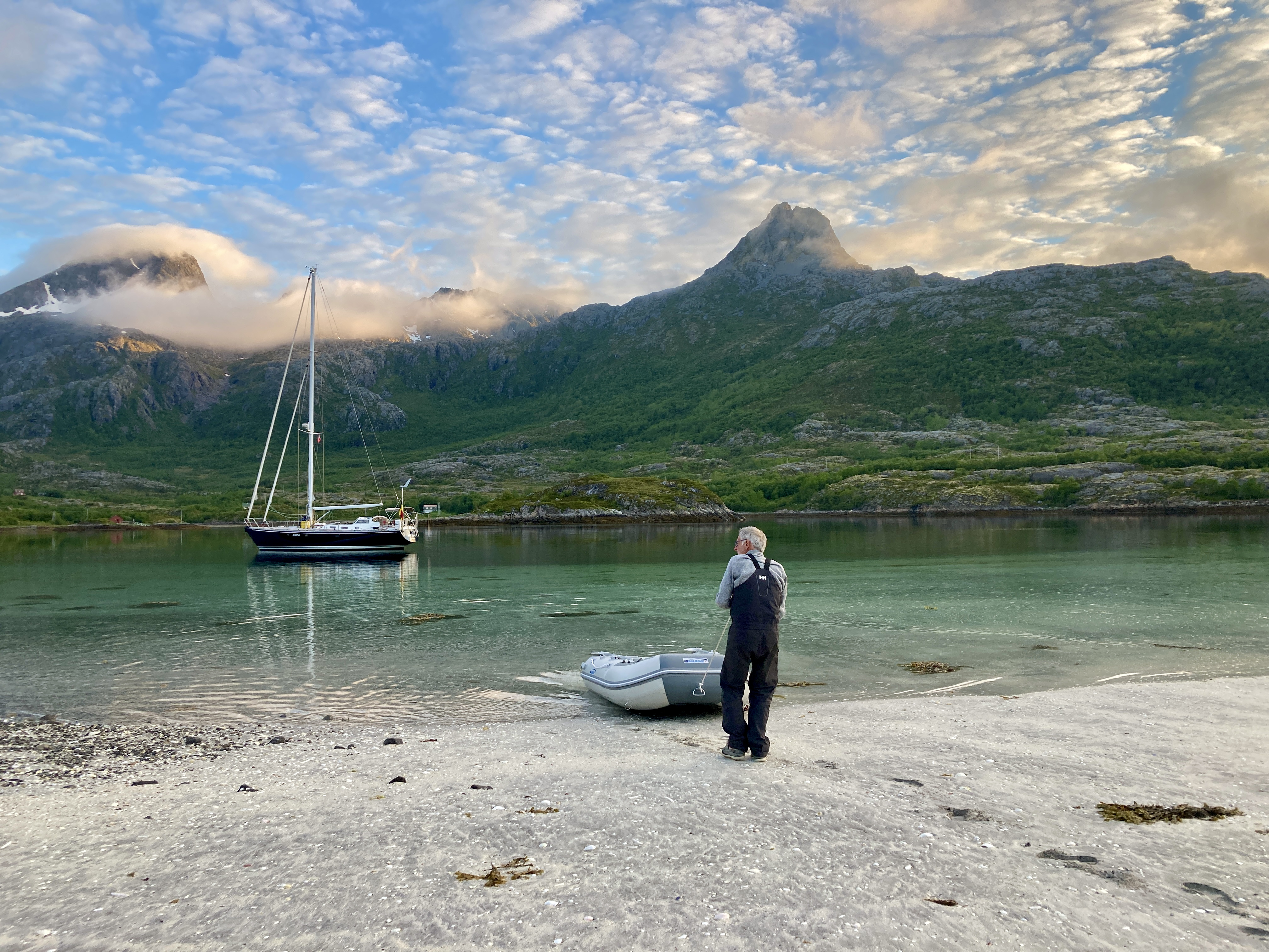 Een dag eerder. Moeilijk te geloven dat er storm op komst is. Heerlijk windje, stralende zon, blauwe lucht. Het tochtje van Henningsvær naar Skrova, goed elf mijl, kan zó in een toeristisch promofilmpje voor de Lofoten.