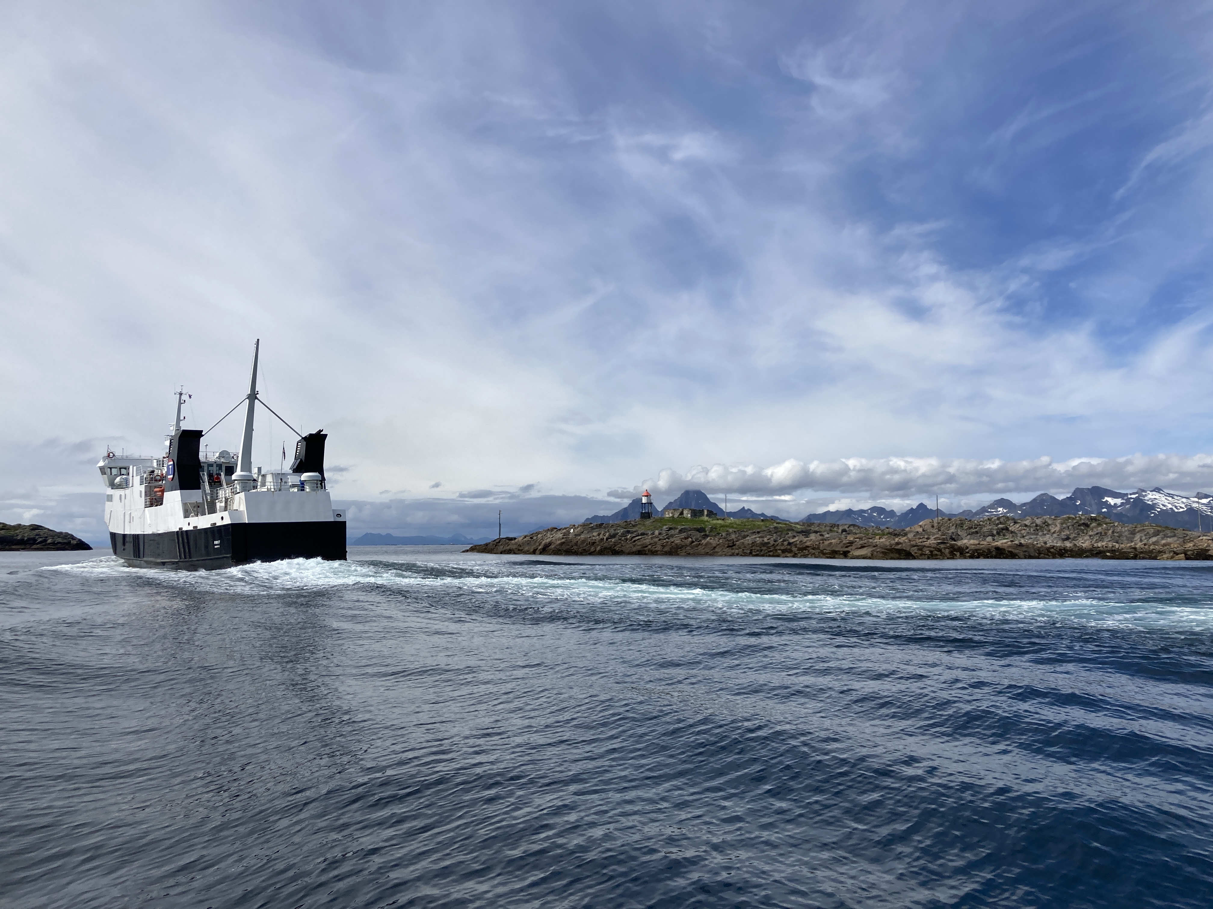 Op de ferrytocht terug nemen we de plaats in van vier personen, maar geen nood, voor de verbinding met een afgelegen eiland als Skrova hoef je niet te betalen…