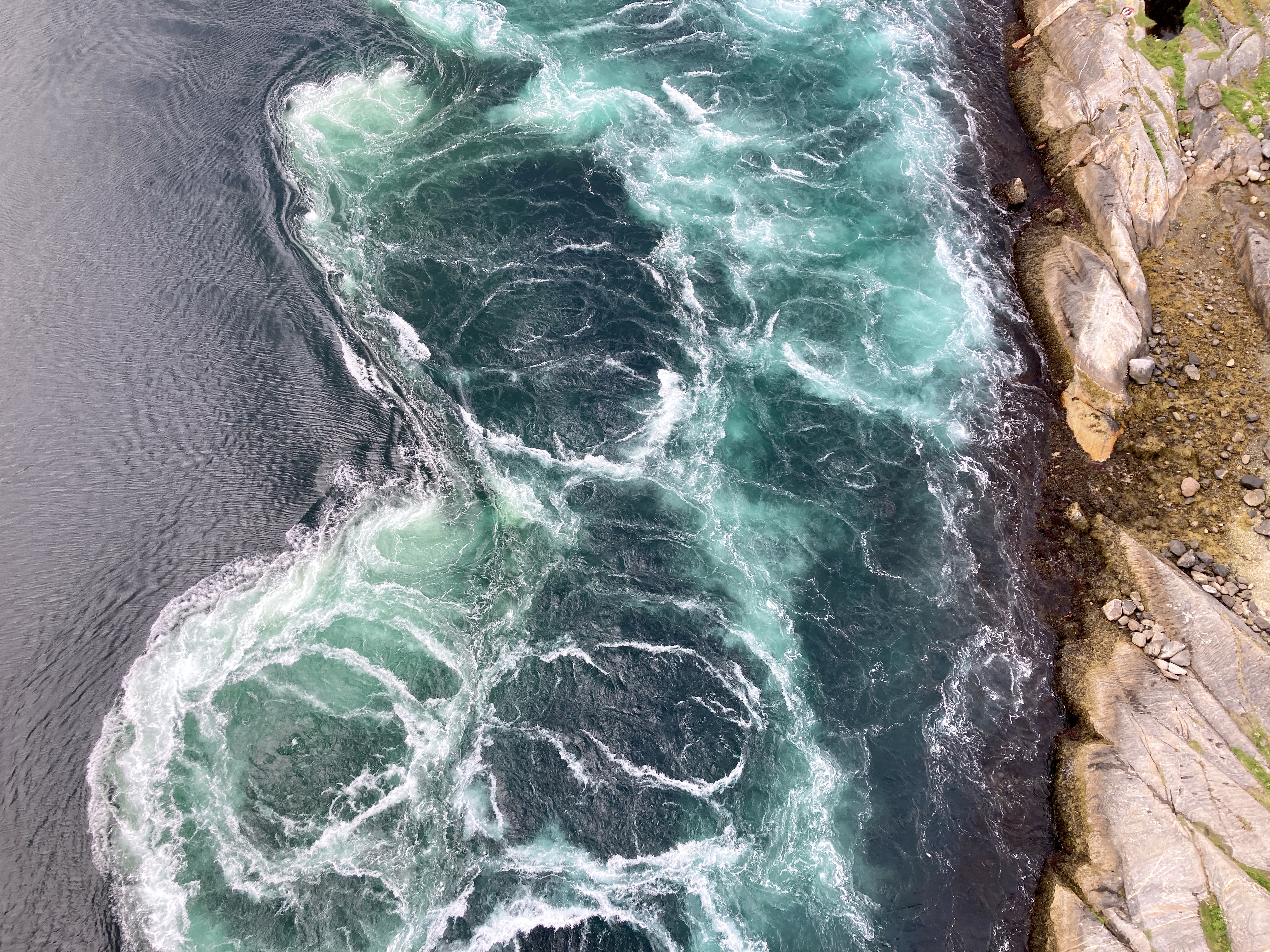 Na het uitknippen van één spannend momentje weliswaar. Dikke ferry duikt op uit het niets en kruist ons met een rotvaart in een smalle doorgang tussen rotsen… Geen nood, tot vlakbij de rotswand is het nog 20 meter diep, we wijken even uit en het filmpje gaat ontspannen verder.