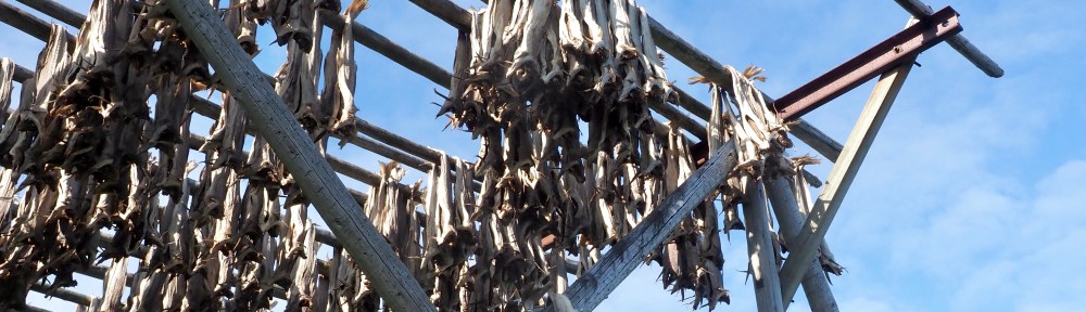 Als we Sørvågen (let op de klinkers!) aanlopen ruiken we het meteen. Vis. Zonder kop en per twee aan de staarten bijeengebonden hangen de kabeljauwen aan houten rekken. Ze drogen aan de lucht, er komt geen zout aan te pas. Dat is tørrfisk. Wordt vis met zout gedroogd, dan is dat klippfisk. De koppen hangen aan andere rekken te drogen. Zonder tongen. Want die zijn er meteen na de vangst uitgesneden en vinden als delicatesse hun weg naar restaurants. Kabeljauwtongen snijden is in de vissersgemeenschappen op de Lofoten een taak van de kinderen. Want als de vis komt, werkt iedereen mee.