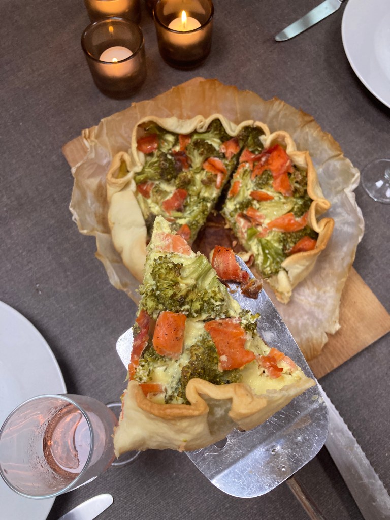 Bladerdeeg – broccoli – gerookte zalm – 2 eitjes – kopje zure room