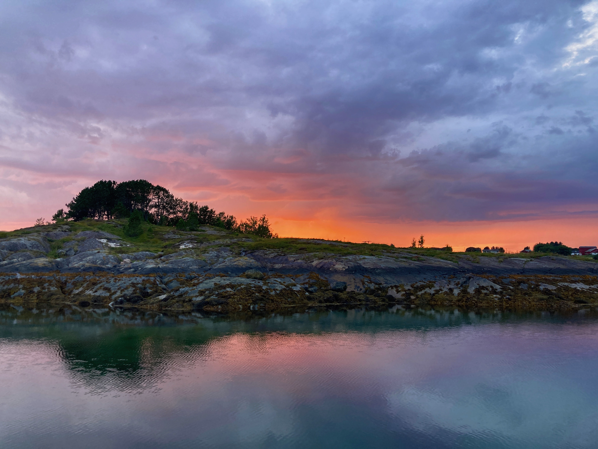 Na ons bezoek aan de Vega archipel zetten we koers naar het landelijke eiland Leka, 45 mijl zuidwaarts. Het is de tweede helft van augustus en hoe mooi de nazomer ook, de dagen korten nu echt wel zienderogen. Na bijna drie maand ononderbroken licht verdwijnt de zon terug onder de horizon, kleurt de hemel bij zonsondergang rozerood en hebben we echte, donkere ‘nachten’!