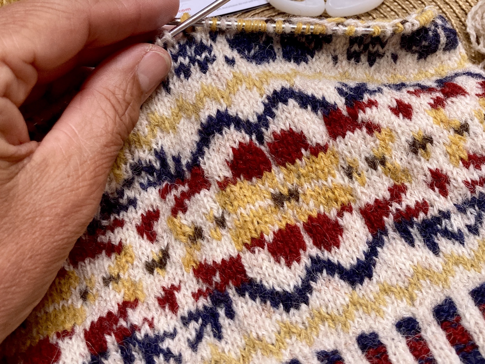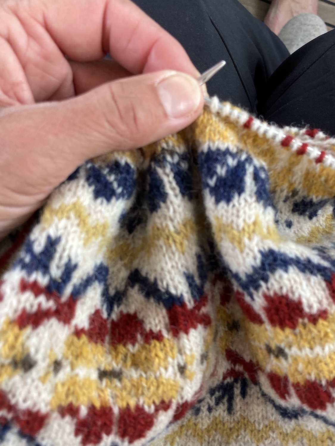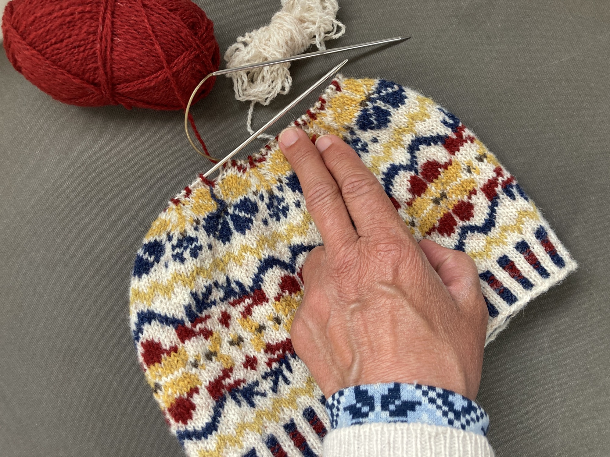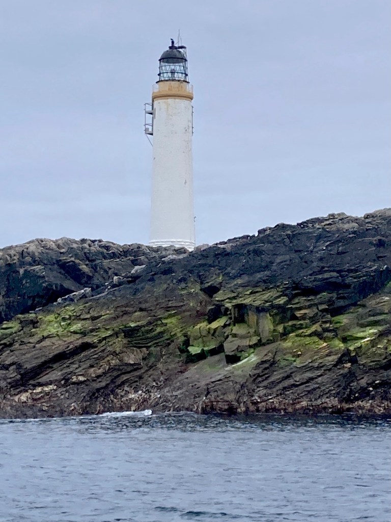 Ik kijk omhoog, naar onze Faeröerse beleefdheidsvlag in het want aan stuurboord. Ze wappert wat stijfjes. Ik knutselde ze dan ook zelf in elkaar met een oud servet, een restje afdekzeil en een verknipte boodschappentas. Maar wat zijn het wit, rood en blauw vrolijk.