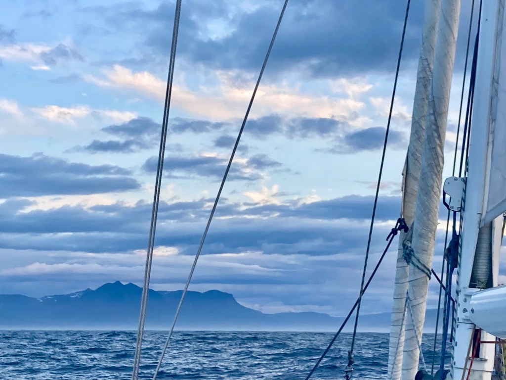 Eind juni sjeesden we dus met 30 tot 35 knopen bakstagwind naar Djúpivogur, halfweg de Ijslandse oostkust. De hardnekkige zeeziekte van onze opstapper was snel vergeten als we na 270 mijl Ijsland bereikten. Vanuit Djúpivogur vertrokken we noord. Vergeet georganiseerde jachthavens zoals bij ons, afmeren gebeurt meestal aan kades met autobanden, soms langszij vissersschepen. We knutselden met lange lijnen, fenders en fenderplanken…