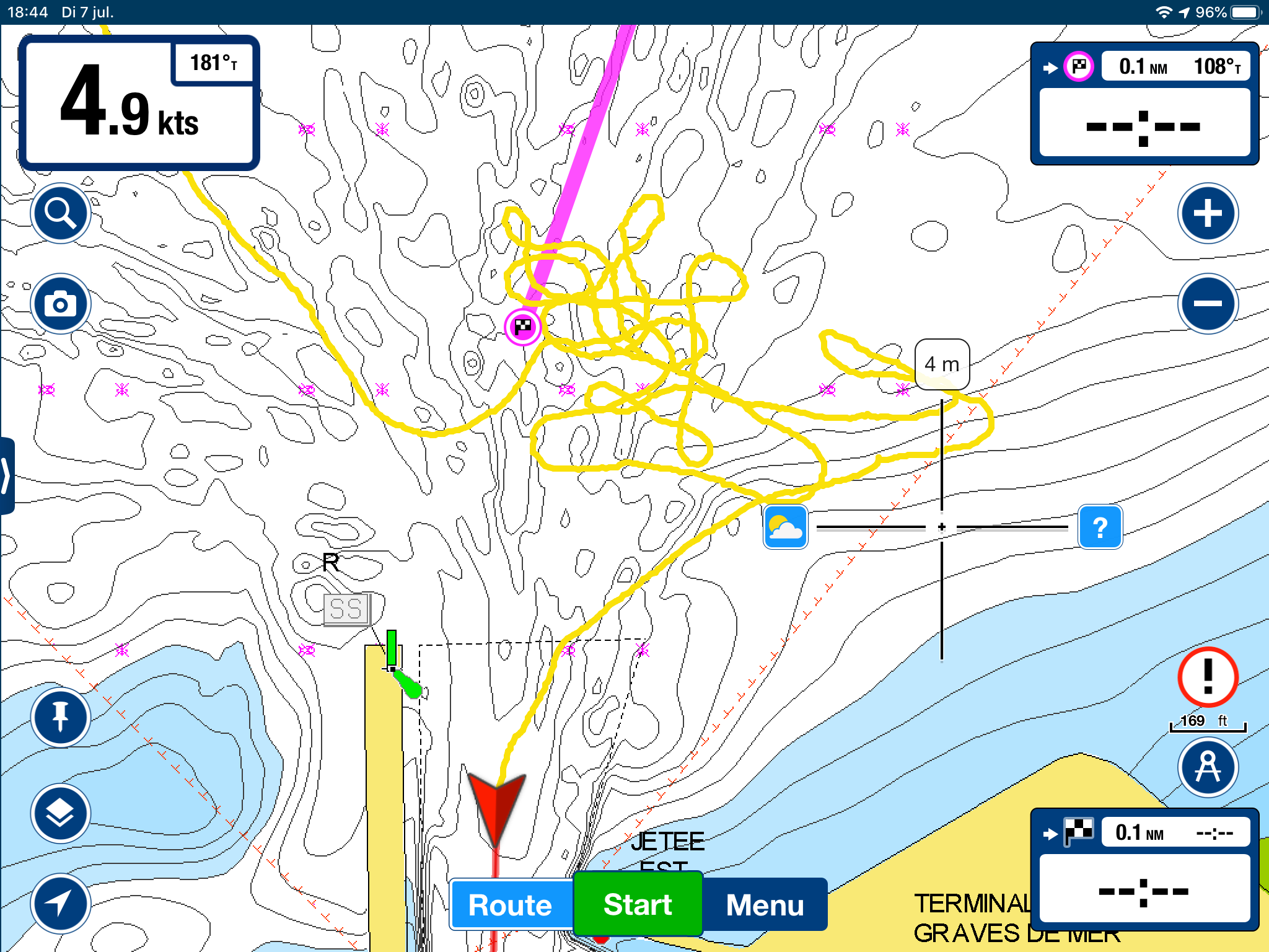 Ik knijp mijn ogen stevig dicht. Niet alleen voor de shampoo die ik royaal door mijn haren wrijf, maar ook voor de staat van de douches van de marina van Le Havre. Smerig is het hier, ik heb er geen ander woord voor. Ik beslis om flink te zijn, beeld me een luxe-design-hotel-rain-shower in en troost me met de gedachte dat water dat uit een douchekop stroomt alleen maar schoon en helder kan zijn. Toch? Dan hoor ik -ogen nog steeds stevig dichtgeknepen- een doffe plof. De tas met mijn douchespullen is van het gammele rek af geschoven en op de natte, vieze vloer getuimeld. Met mijn kleren er bij. Witte slip, beige short liggen halvelings in een gore plas. Iets minder wit, iets minder beige… Ik gruw.