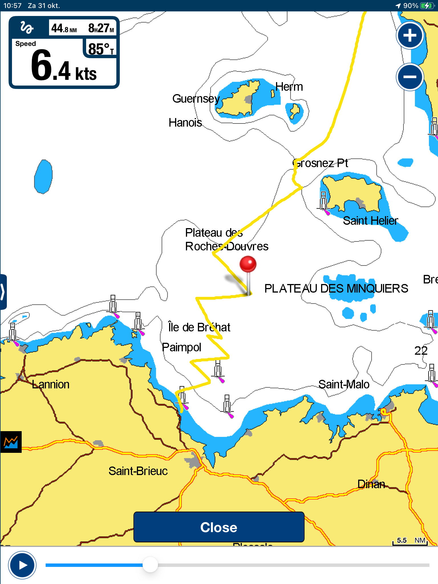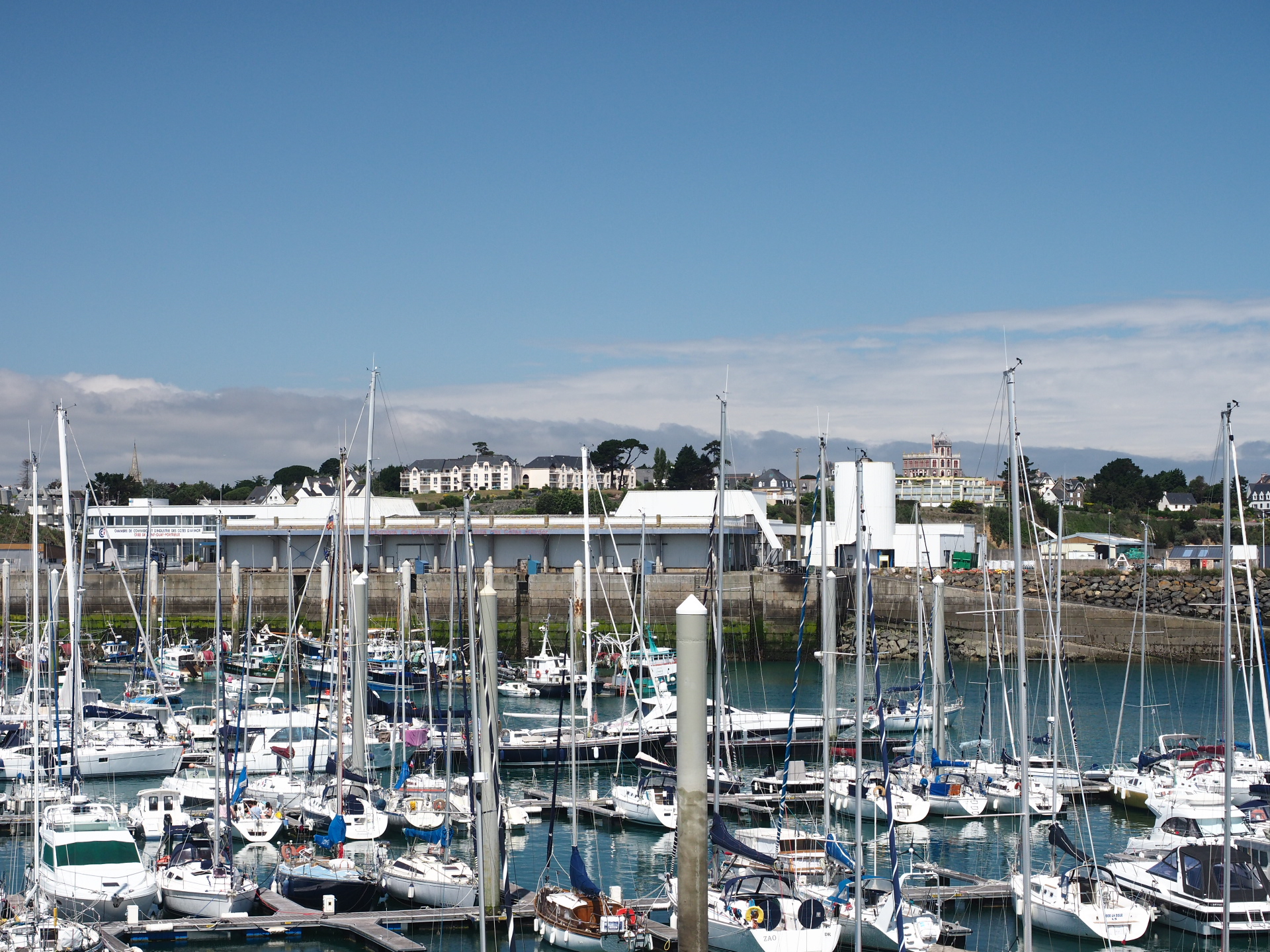 Hoe lang een zeilvakantie ook duurt, op een bepaald moment verandert elke héén in een terug en is er altijd dat beetje marge dat je wil. We moeten naar huis, wat gaan de dagen snel. St-Quay-Portrieux – St-Vaast-la-Hougue, een flinke tocht met een nacht op zee, een wiebelende ankernacht voor Ile Tatihou en de zeiltocht tegen wind naar Le Havre hebben ons moe gemaakt. Al heb ik zin om bij aankomst de boel de boel te laten, we beslissen om nog enkele laatste inspanningen te leveren, tanken, douchen, een hapje eten. Tanken, check. Douchen, ternauwernood overleefd. Nu nog eten. Het eerste het beste terrasje volstaat. We lijken bijna op straat te zitten, de plastieken tafel en stoelen zijn gammel maar… de mosselen met frietjes zijn ronduit lekker! Met een frisse pint spoel ik de niet zo verkwikkende douche-ervaring weg. En als we terug naar de boot wandelen kleurt de lucht plots zo veelbelovend mooi dat ik besluit Le Havre nog een kans te geven…