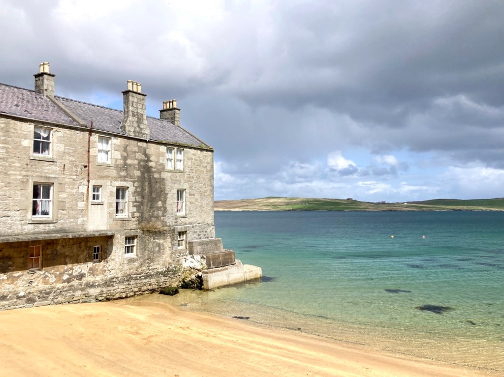 Achteraan in Hamish’ boek staan drie bijzondere bijlagen. Een overzicht van de eilanden die hun eigen postzegel mogen uitgeven, de eilanden met whisky distilleries en… de eilanden met een golfbaan. Die laatste, dat zijn er 29 en Gigha is erbij. Als na twee dagen binnenzitten het stormweer over is, rijden we er voorbij op een fietstochtje naar het noordelijkste puntje van het eiland. Op Gigha zie je bijna geen schapen maar vooral koeien. Het was ook de verdienste van Sir Horlick om de melkveebedrijven te moderniseren… Hij bouwde zelf een zakenimperium uit met warme drankjes, die net als hij Horlick heten. Ik had er nog nooit van gehoord, maar heb ze hier in de supermarkt al zien staan. Misschien toch maar eens proberen!