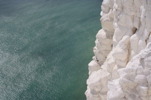 Na een zonnige dag kwakkelen, zeil, motor, zeil, motor naderen we Beachy Head. In het westen zakt de zon traag achter de klif, in het oosten gaat de volle maan op in een zweem van babyroze en babyblauw.