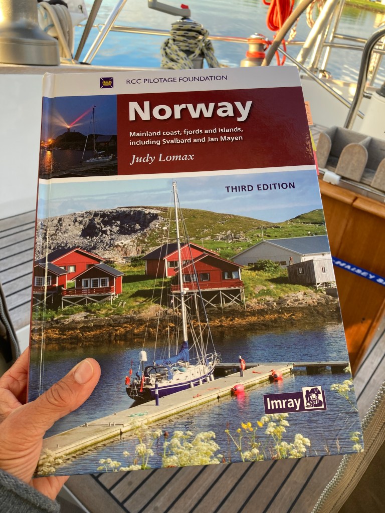 Onze route is dan ook geen rechte lijn noord maar krult en kronkelt mee met fjorden, inhammen, rond eilanden en kapen en langs zoveel afmeerplekken dat je hoofd ervan tolt. Om hierbij -letterlijk- het noorden niet kwijt te raken zijn goede kaarten en ook goede vaargidsen een noodzaak. Mijn favoriete gids is het boek van Judy Lomax, dat simpelweg Norway heet en een schat aan informatie biedt. En op een manier die ons bevalt, met beschrijvingen die beknopt zijn maar accuraat. Maar er staat veel meer in dan in één reis haalbaar en het is telkens selecties maken van haar selecties…